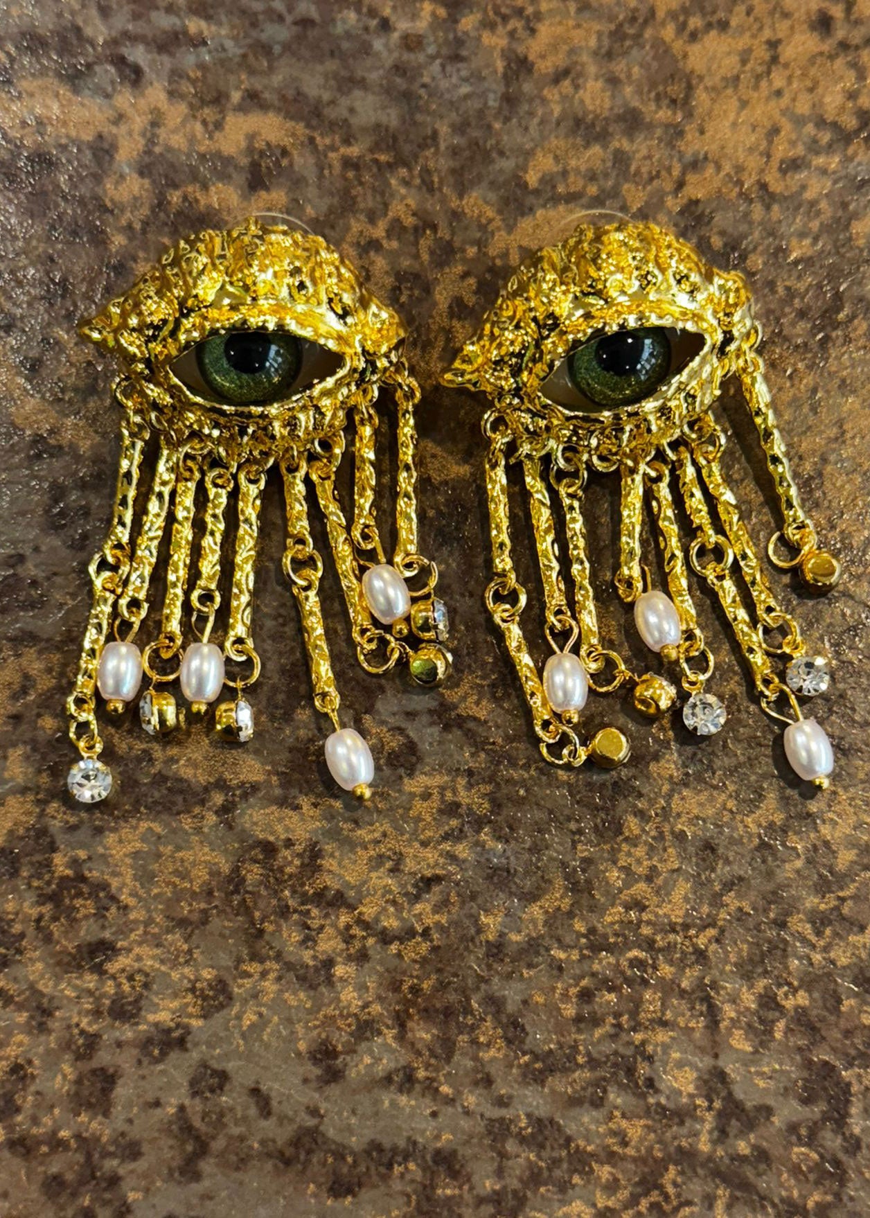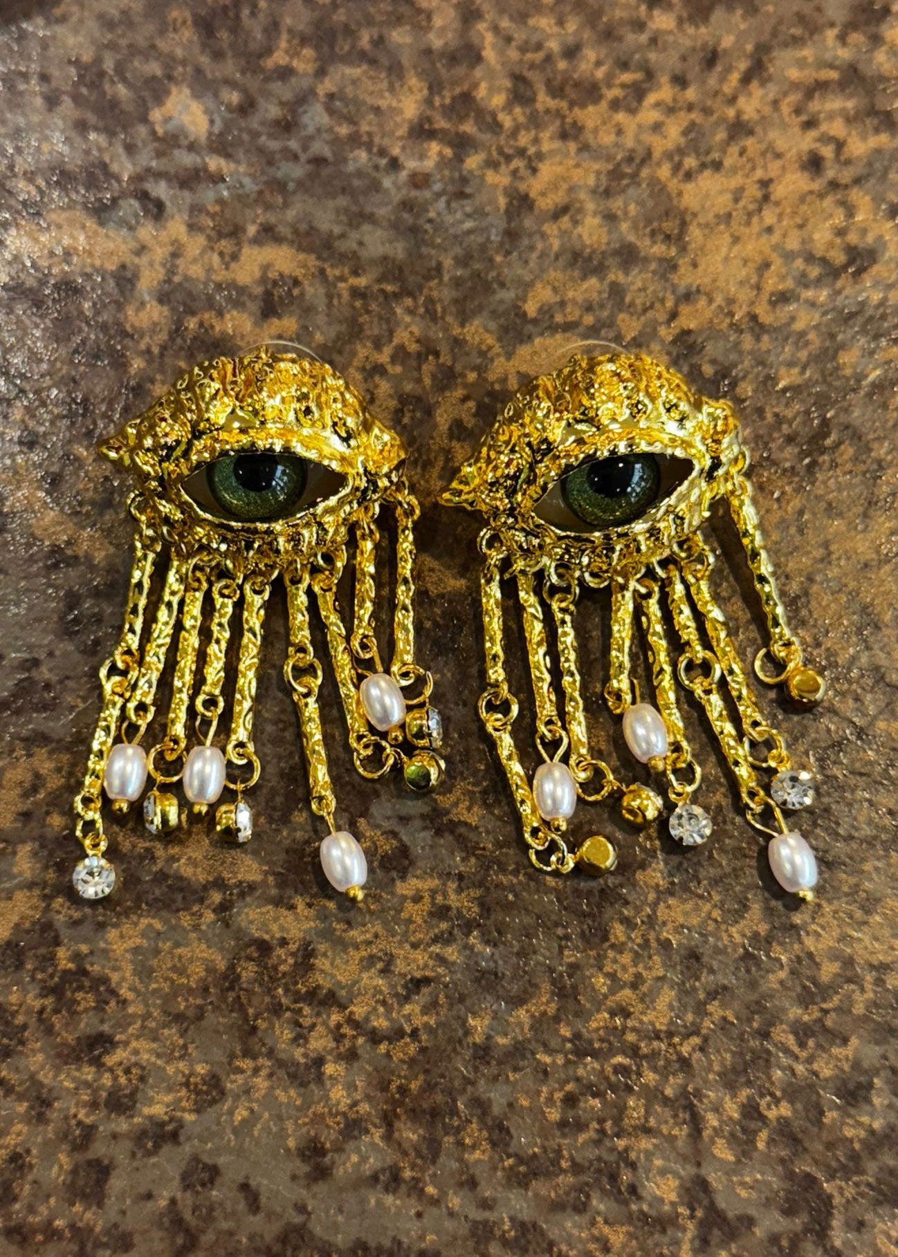 PROJECT SIXTY5 Large Green Eye Earrings (Pair)