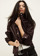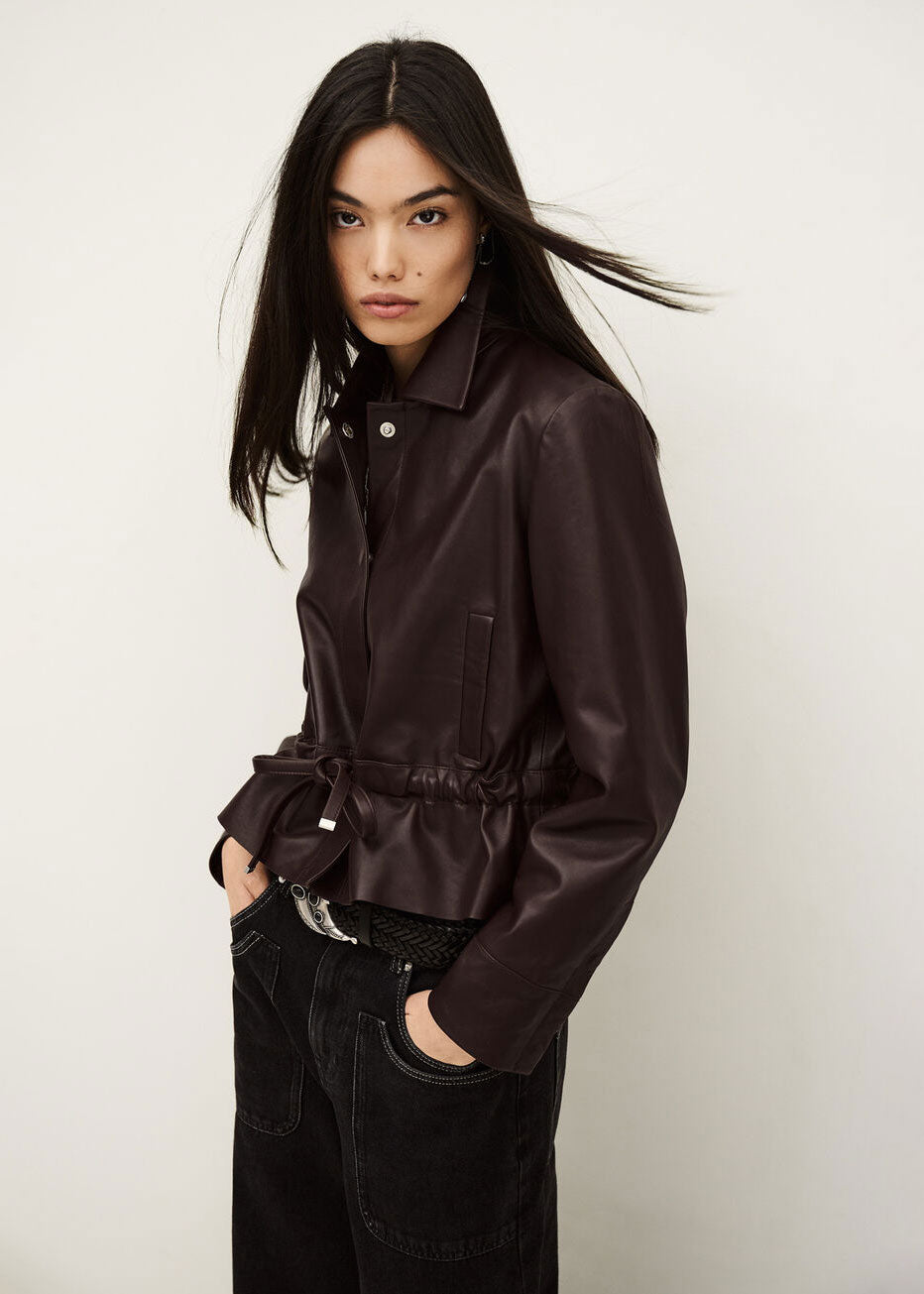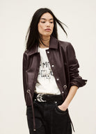 BA&SH Manita Cropped Leather Jacket - Prune