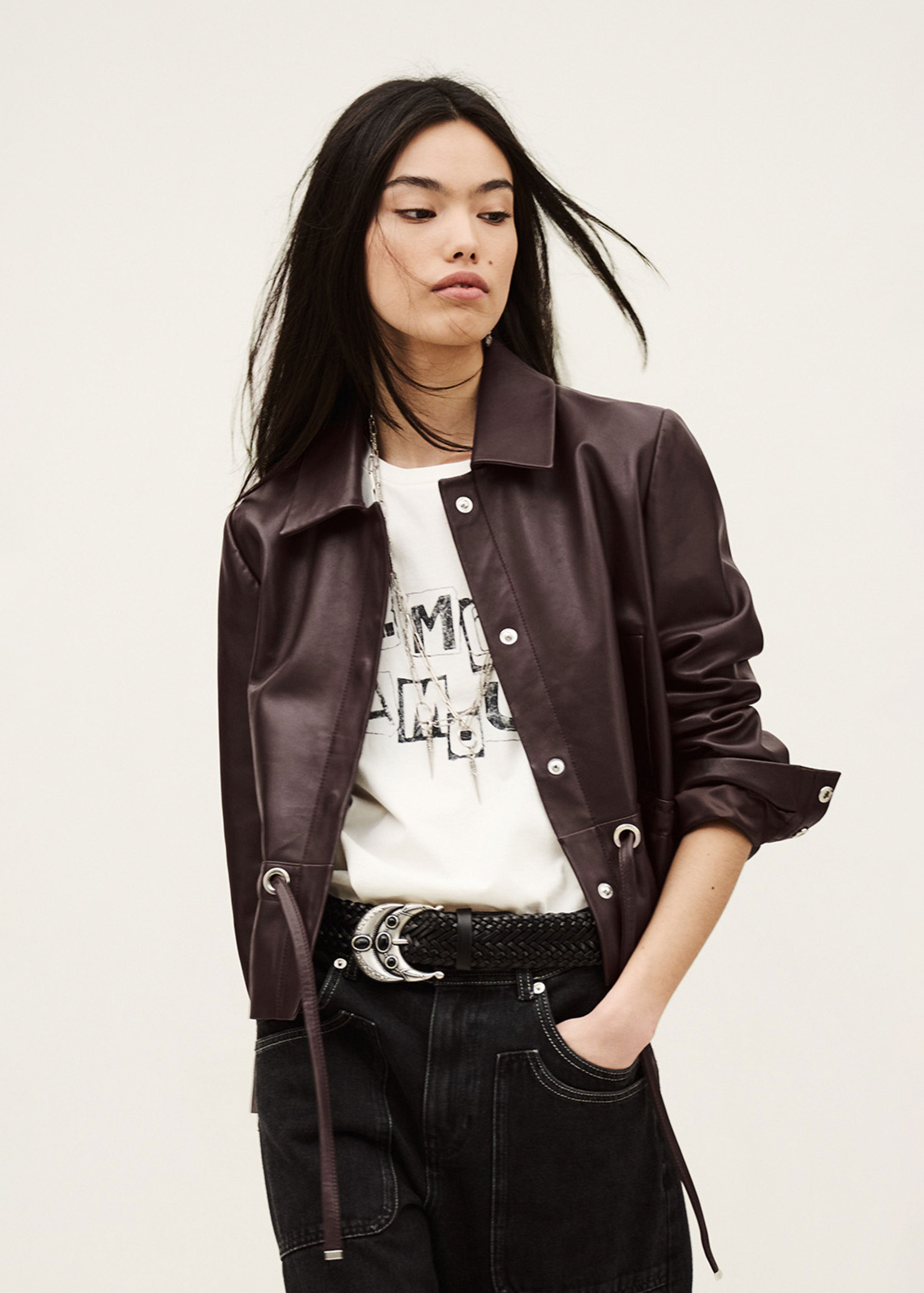 - Cropped leather jacket