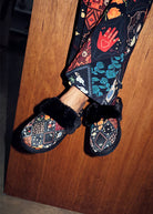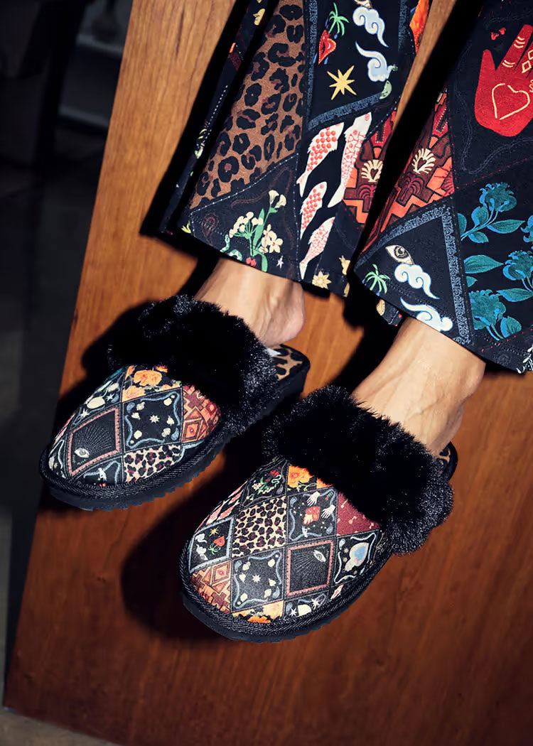 Our night garden print, featuring combinations of our iconic leopard, mystical, poppy and bandana motifs from our bestselling prints. With a thick base and lined with fur, they're the perfect night time essential. Pair with the matching PJ's!