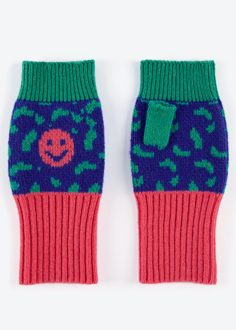 MISS POMPOM Smiley Fingerless Wool Gloves