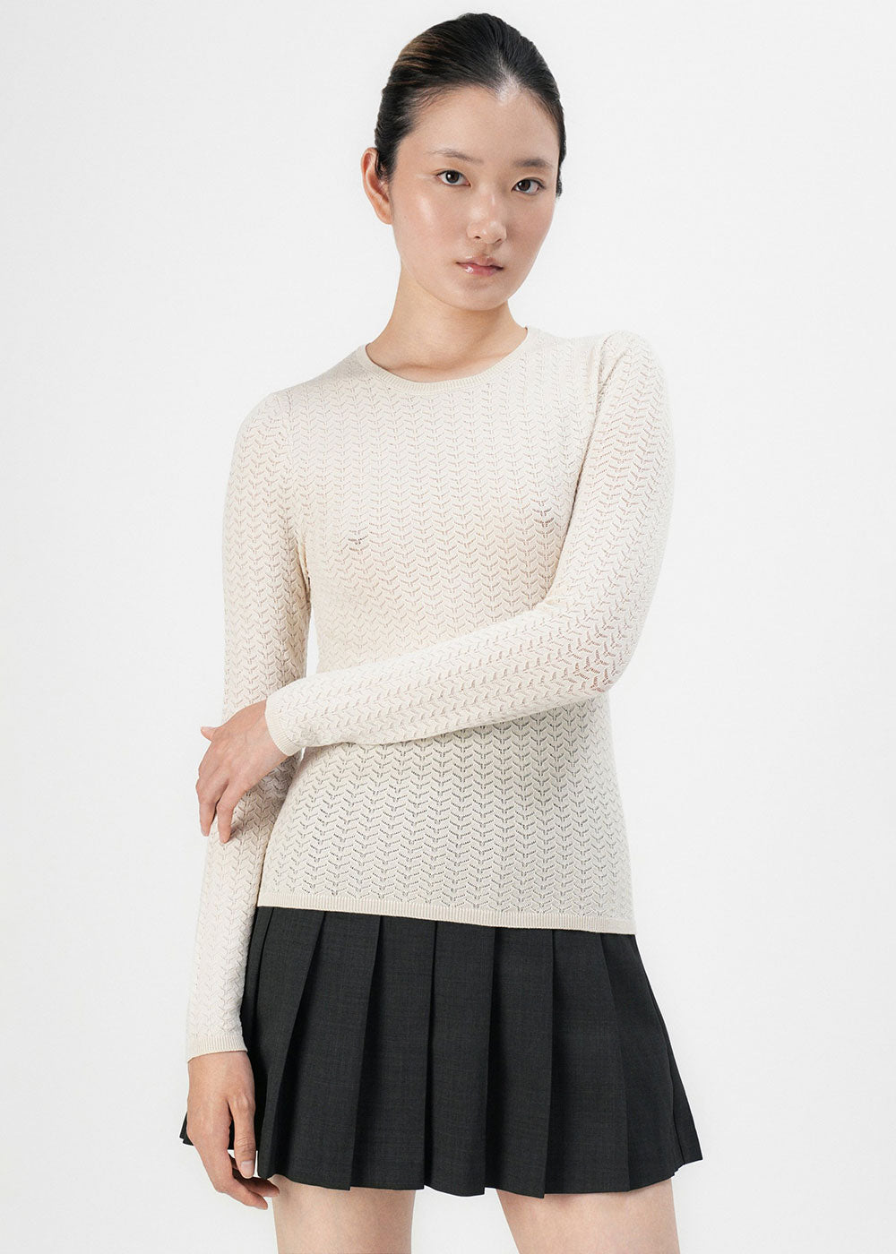 SELECTED FEMME SLFNaja Tight LS Knit O-Neck Top - Birch