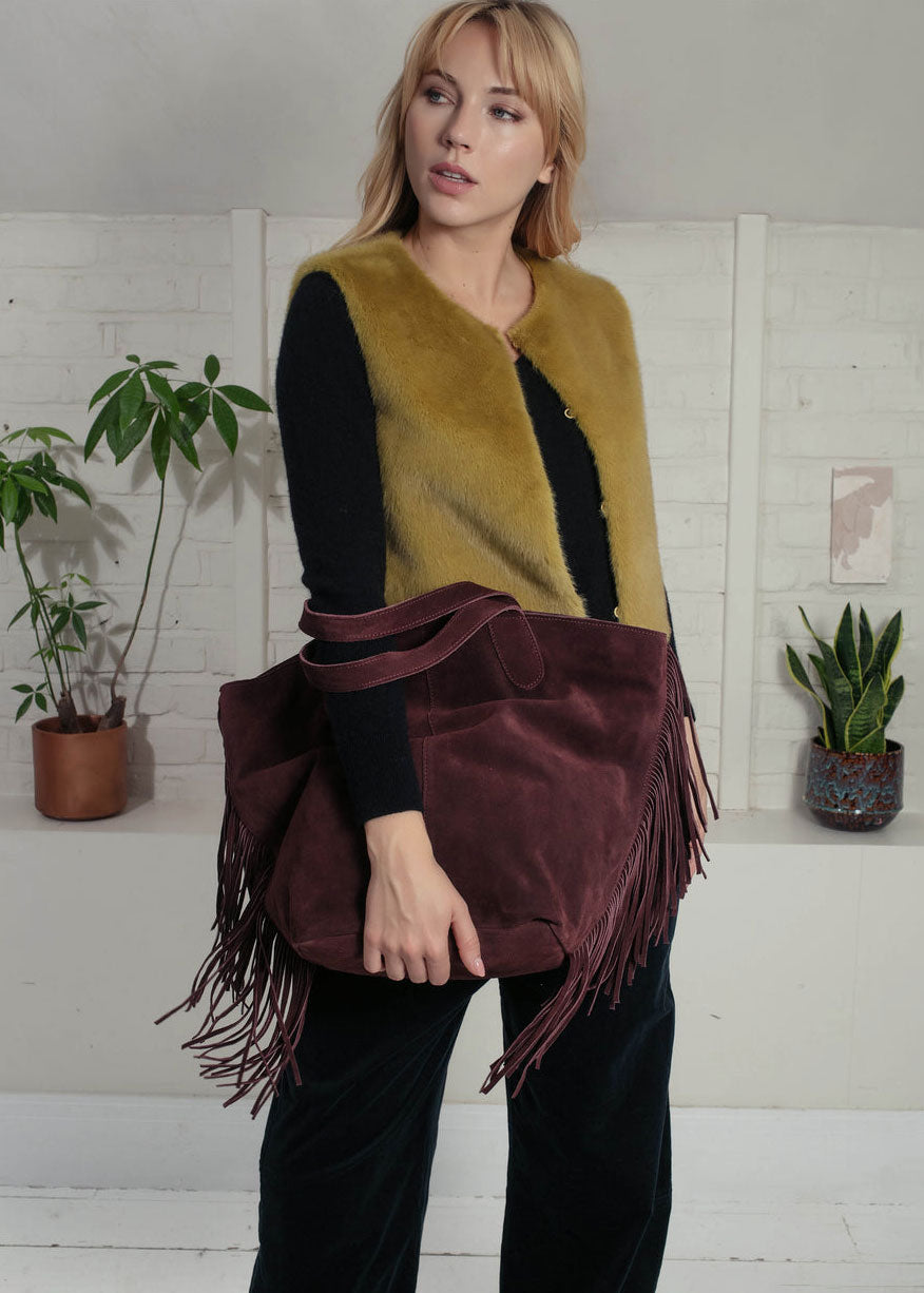 The Kingston Tassel Cross Body Bag in gold offers a distinctive blend of luxe and bohemian style with its soft metallic leather and detailed fringe.