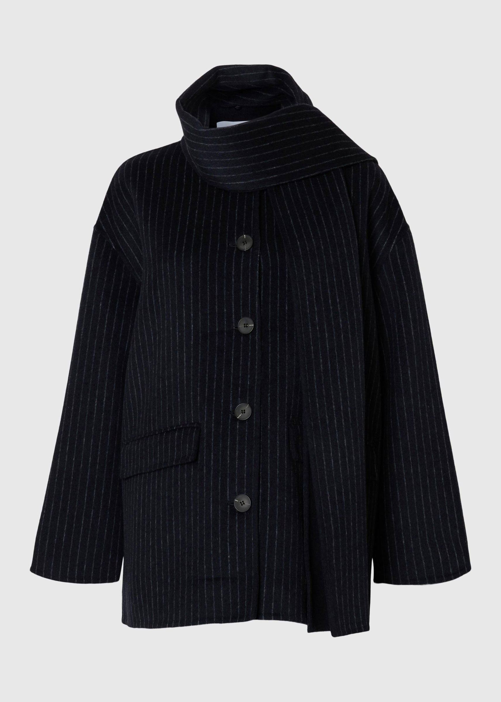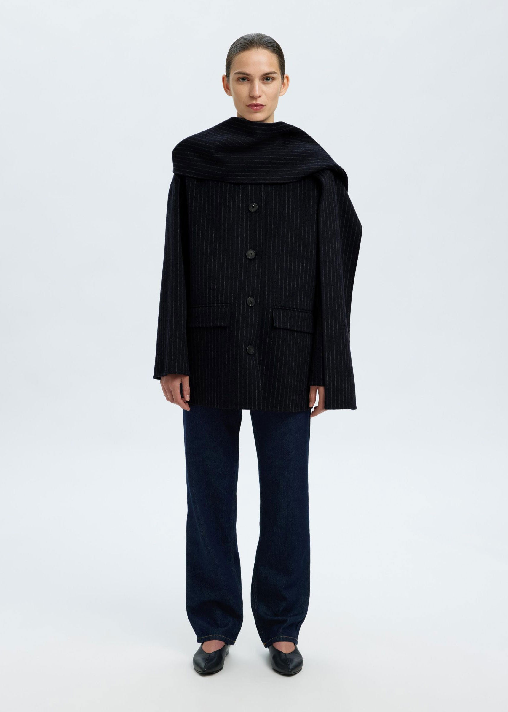 SELECTED FEMME SLFPam Wool Blend Scarf Pinstripe Jacket - Dark Sapphire