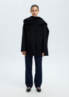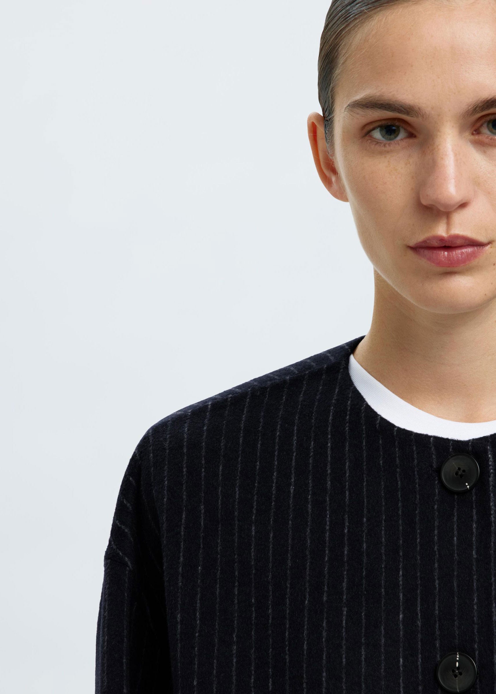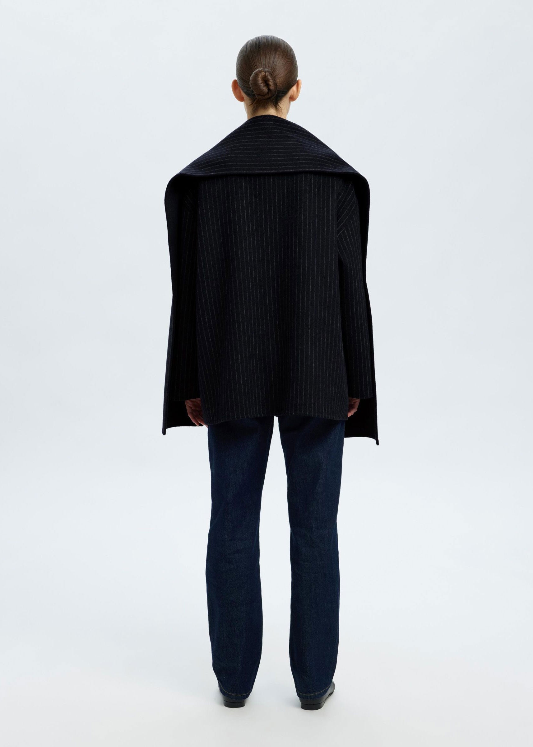 This beautiful, handmade jacket is the perfect piece to elevate your outerwear collection. It has a timeless pinstripe pattern reminiscent of traditional tailoring and has a scarf that you can wrap around your neck or remove, depending on the weather. Style it with wide-leg trousers and a pair of leather ballet flats.