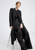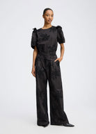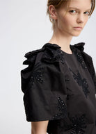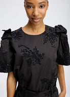 Elegant black blouse with short, wide sleeves and decorative sequin embroidery. The blouse features a loose fit and beautiful details on the shoulders, creating an exclusive and festive look.