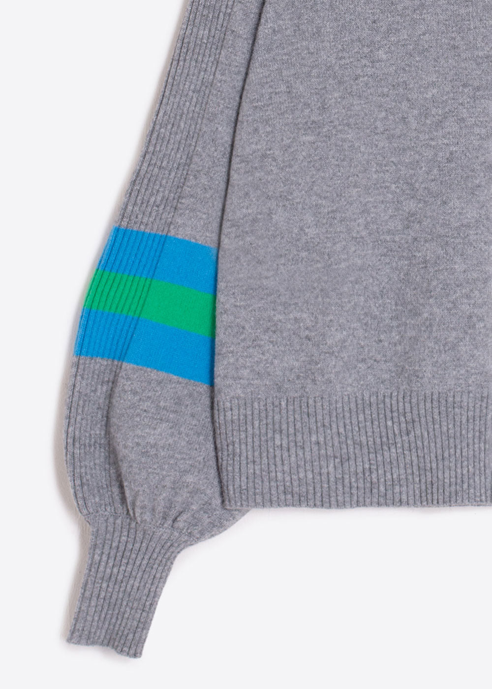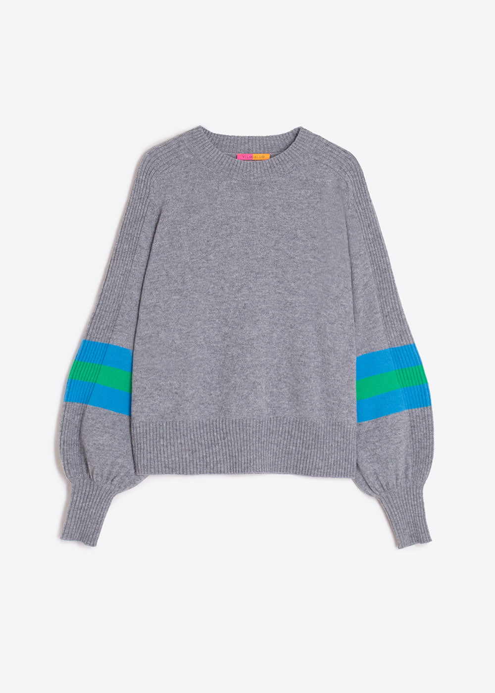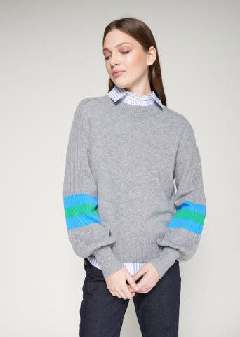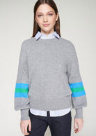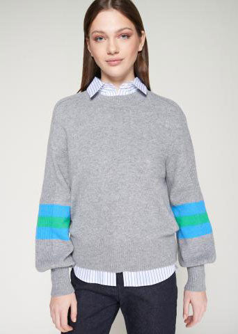 VILAGALLO Balloon Sleeve Stripes Sweater - Grey Blue Green