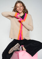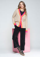 VILAGALLO Beige Striped Cardigan - Pink Orange