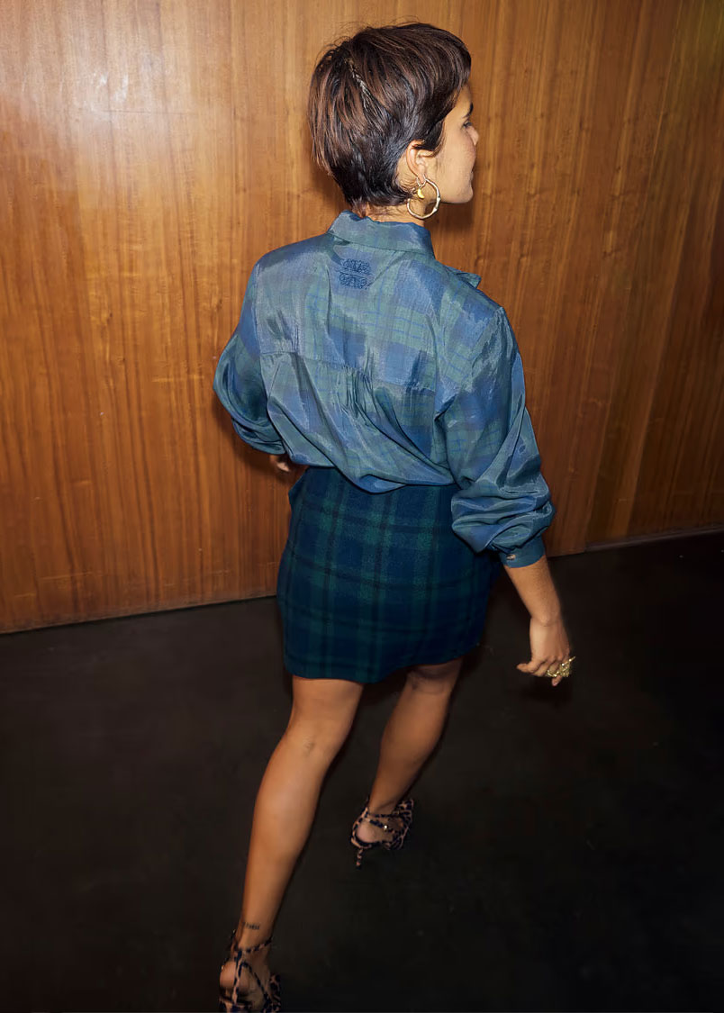 This skirt is guaranteed to make a statement without even trying! The blue and green tartan print on the wool base feels effortlessly luxe and is definitely taking us into the autumn/winter seasons! Pair with heels and a clutch for easy evening styling or with tights and boots to take it into the colder seasons. And if you love the print as much as us, check out the matching coat!