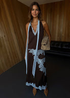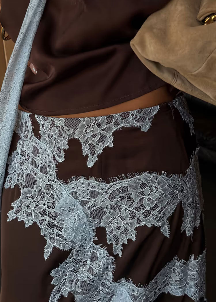 This skirt is definitely bringing all the feel good dressing vibes! In a chocolate brown satin that skims your curves and creates an effortlessly chic silhouette. With gorgeous lace detailing along the front and across the hem it's perfect for dressing up or down. We've paired with the matching top and heels, creating a perfect wedding guest look!