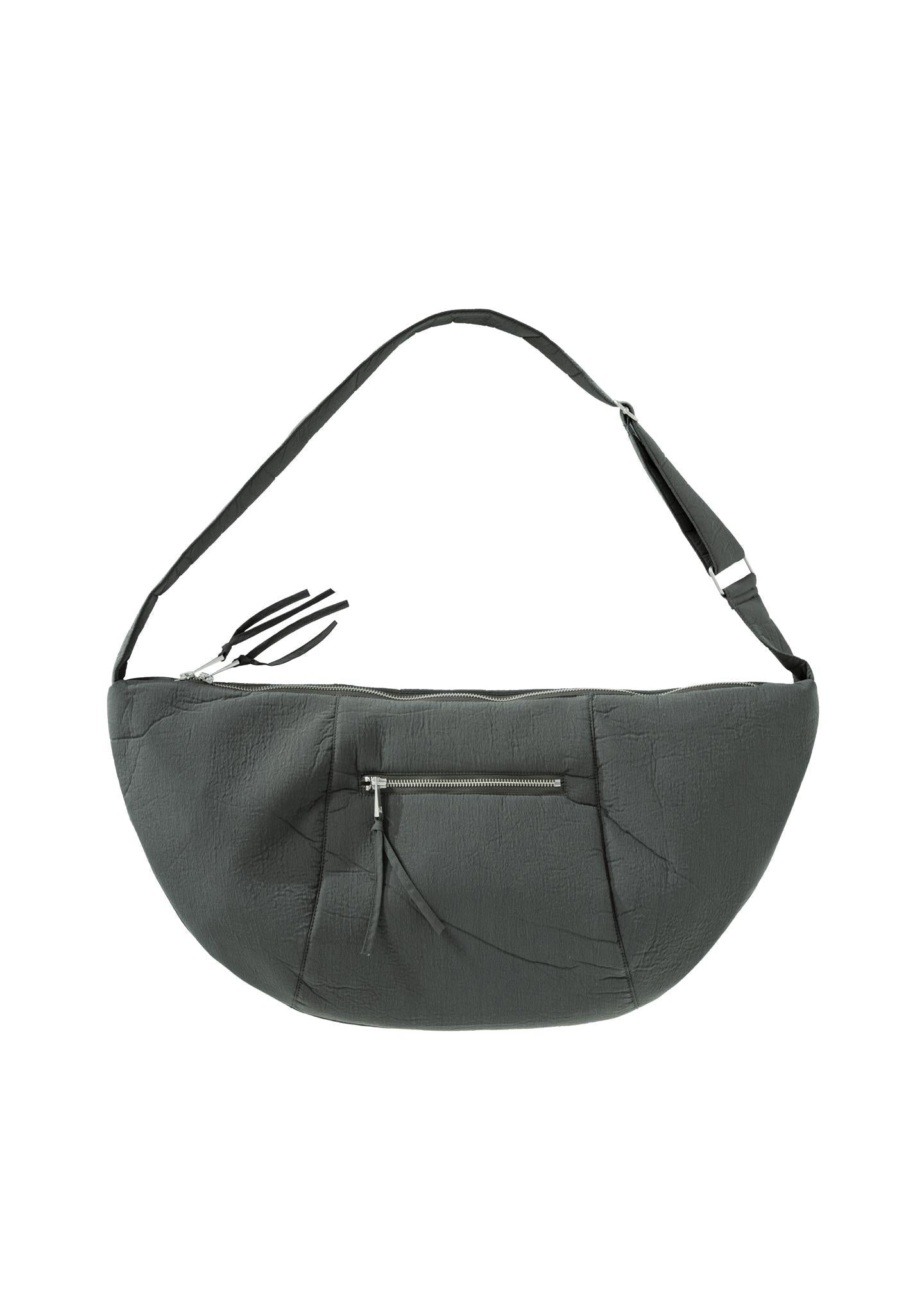 This crossbody bag comes in a solid colour with a subtle textured fabric. It features a zip closure, an additional front zip pocket, and decorative cord details. The adjustable shoulder strap ensures a comfortable fit. A stylish and practical accessory for everyday use.