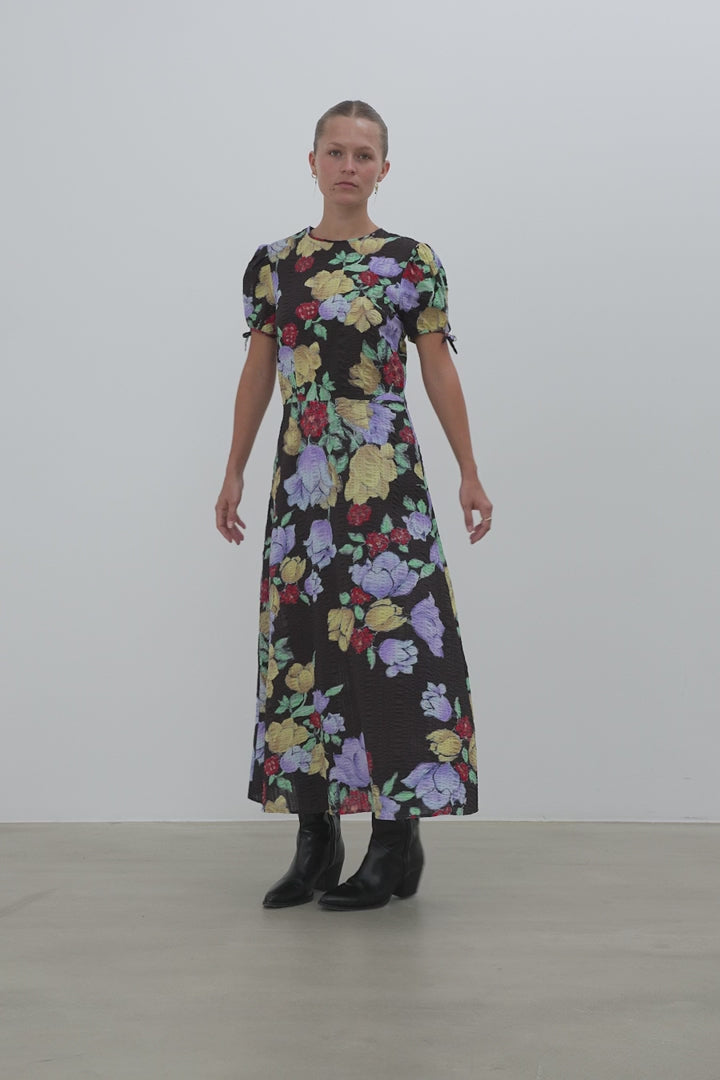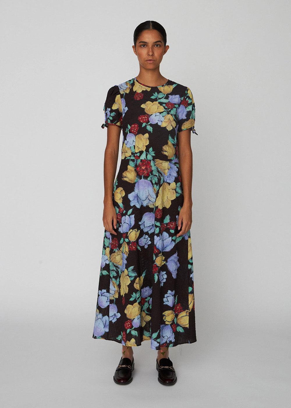 STELLA NOVA Flowered Cotton Midi Dress - Dark Flowers