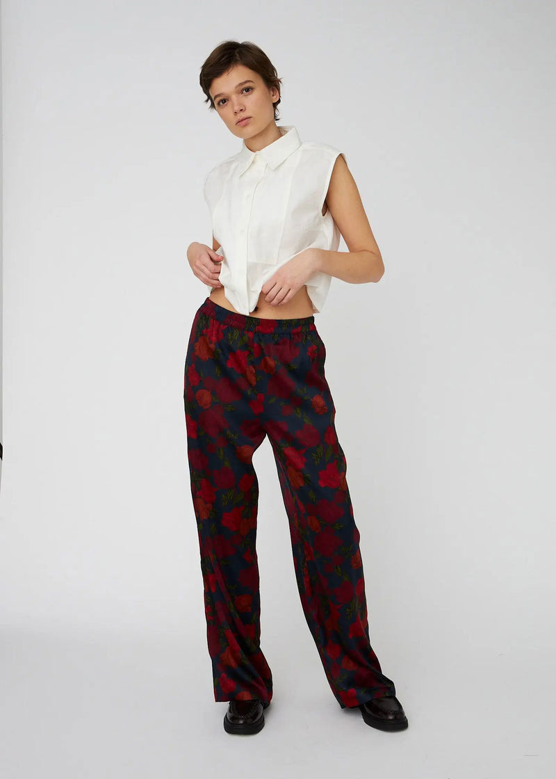 STELLA NOVA High-Waist Silk Pants - Flower Forest
