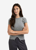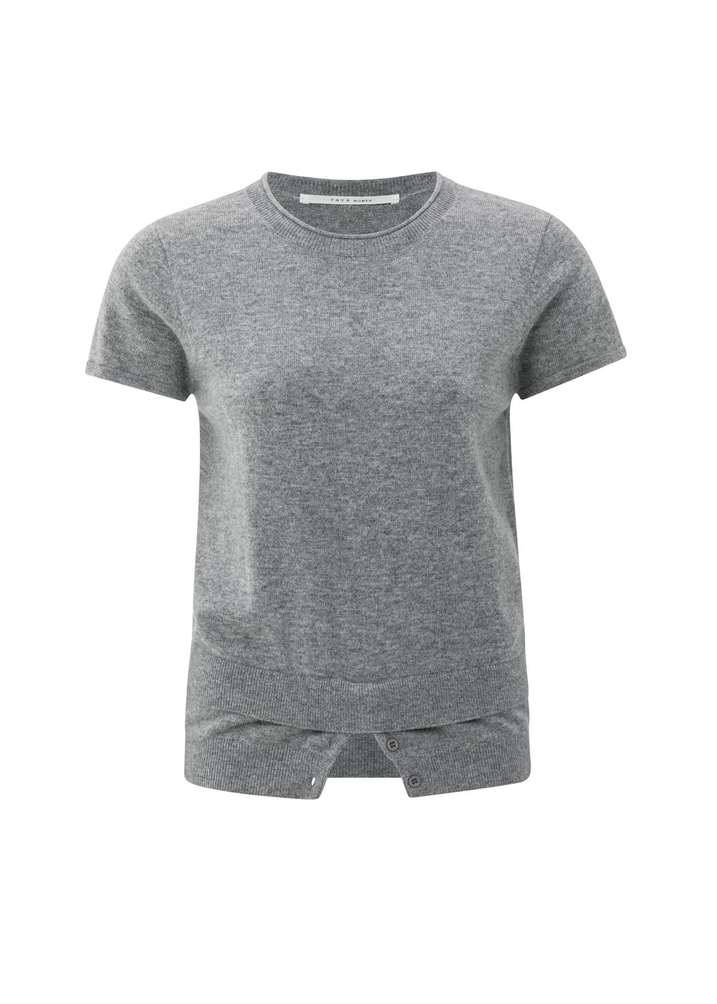 YAYA Knitted top with double hem and button details - Medium Grey Melange