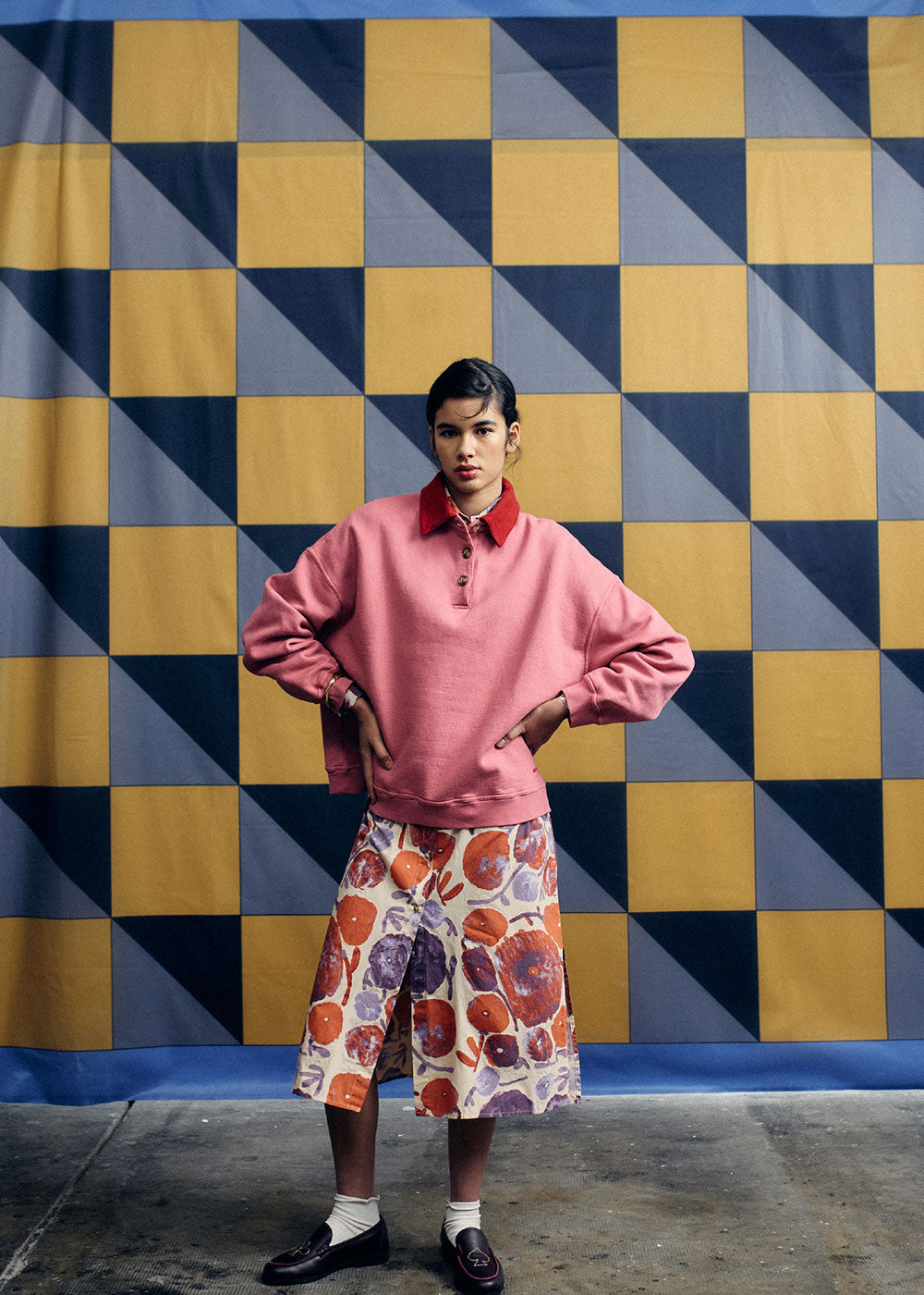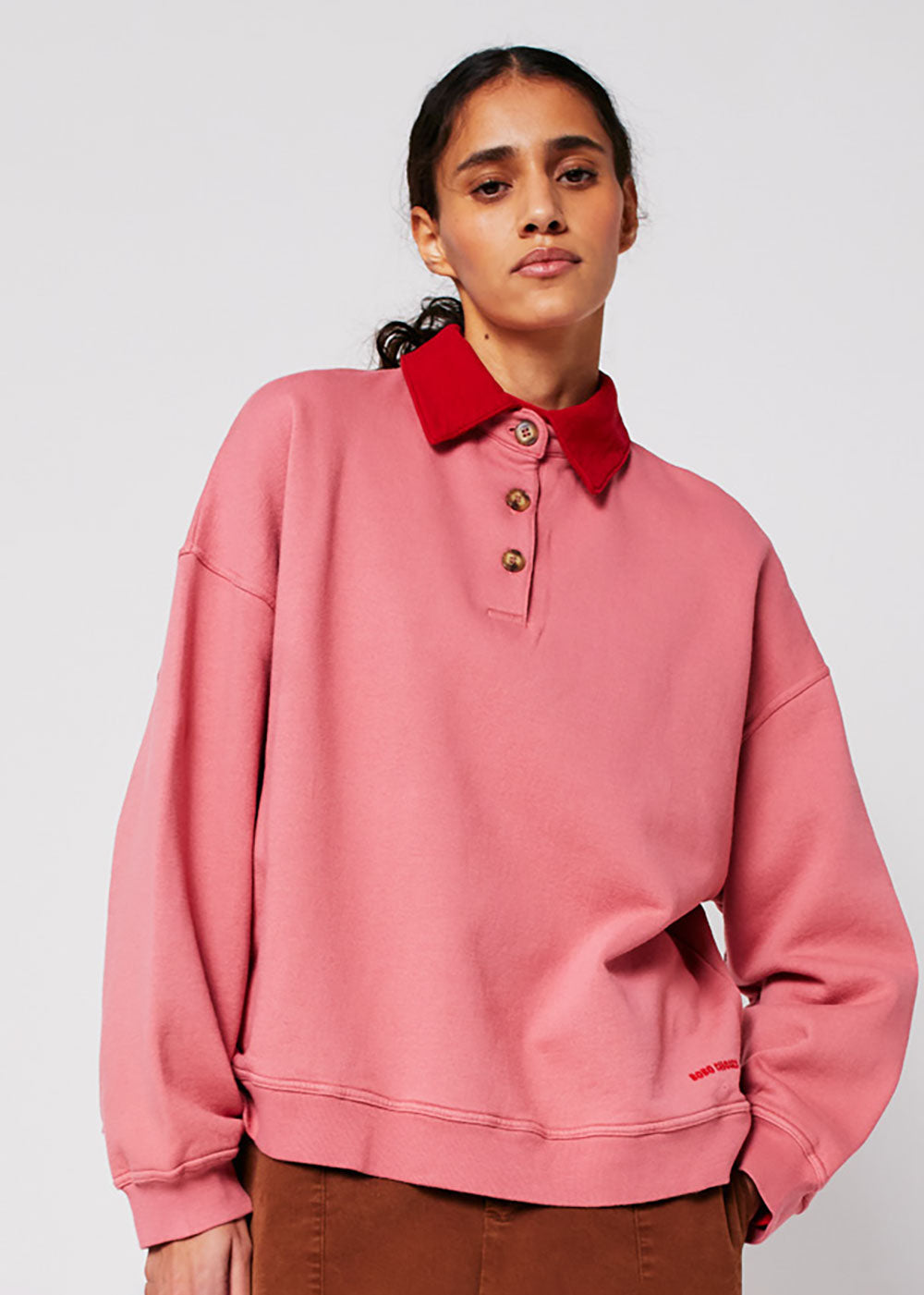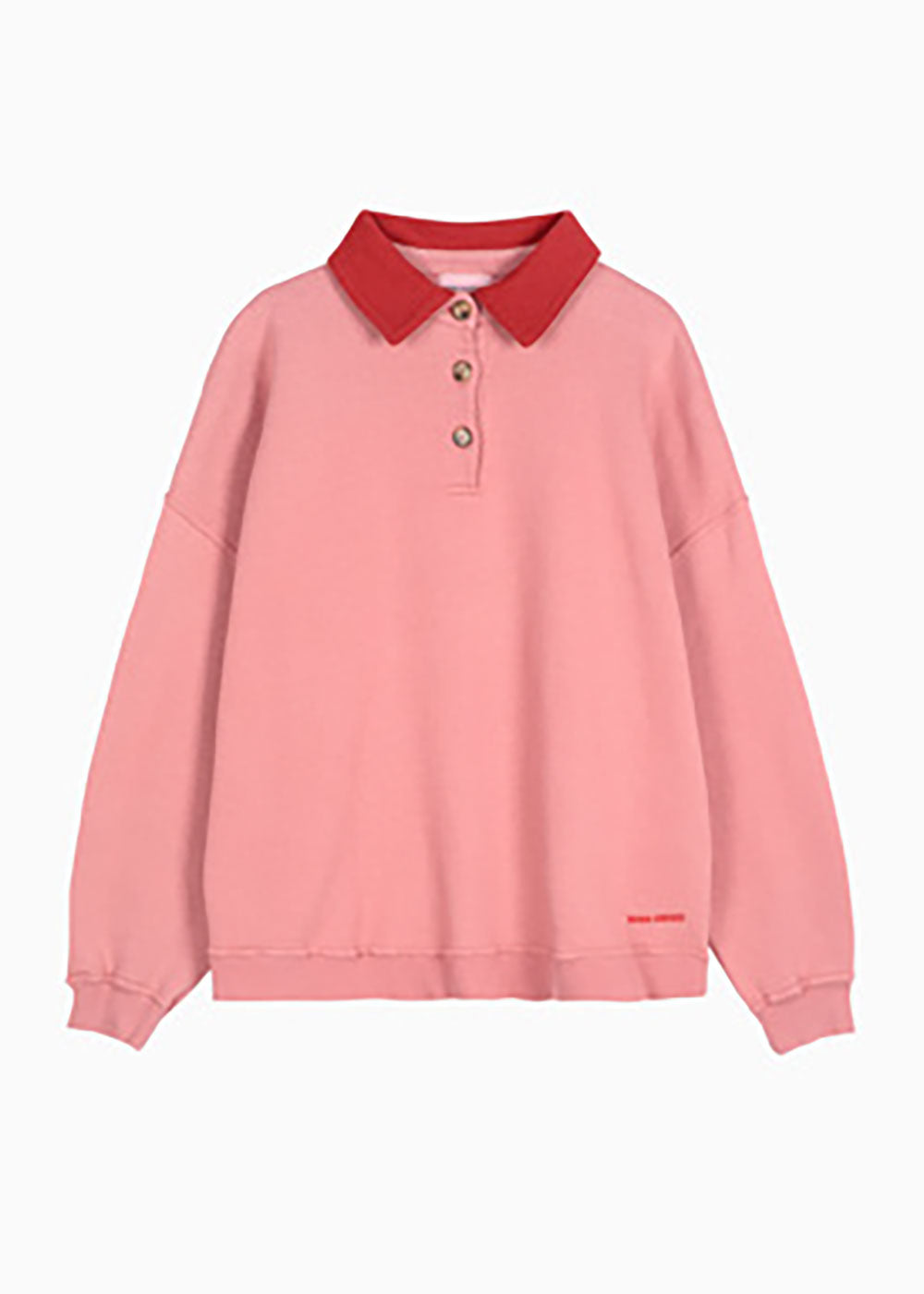BOBO CHOSES Oversized Colour Block Polo Sweatshirt -Pink