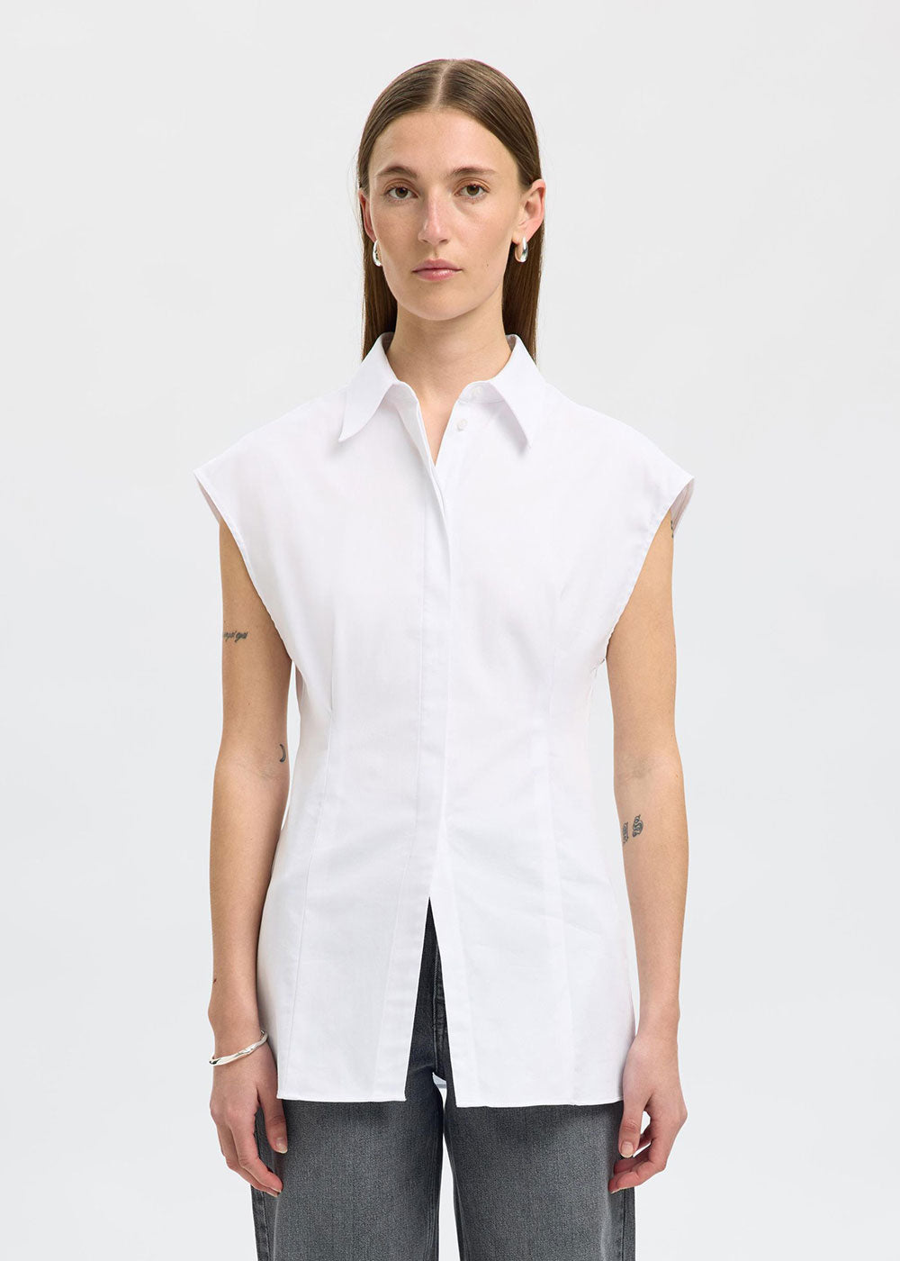SELECTED FEMME SLFFINA Slim Fit Short Sleeved Shirt - Bright White