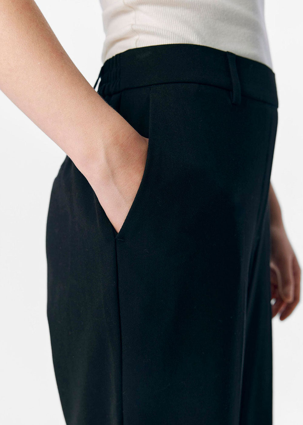 - Mid rise waist elasticated in back