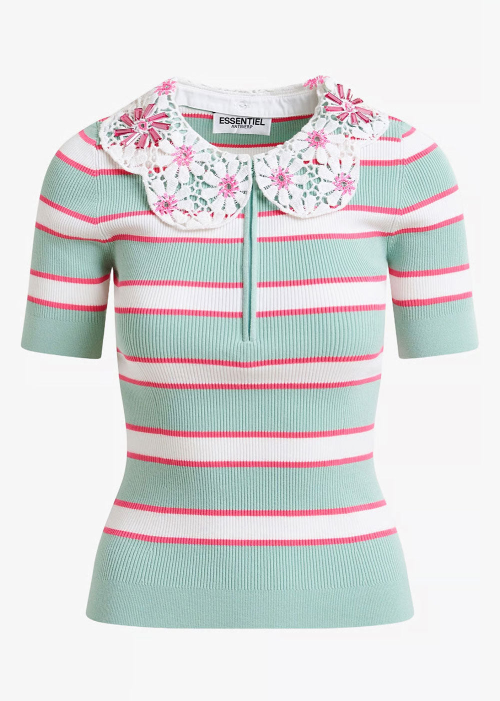 ESSENTIEL ANTWERP Iota Polo - Green, Pink & White