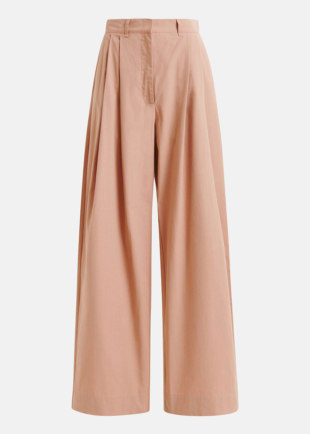 Tailored from a crisp cotton fabric, these pants have been smartly detailed with pleats at the waist that fall into folds down the pooling wide leg. The pair is finished with two welt pockets at the back, slanted front pockets, and a zip-hook front closure.