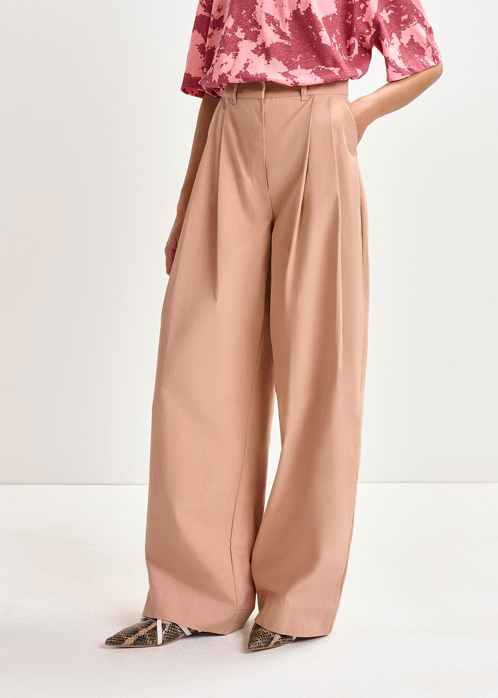ESSENTIEL ANTWERP Light brown cotton wide-leg pants