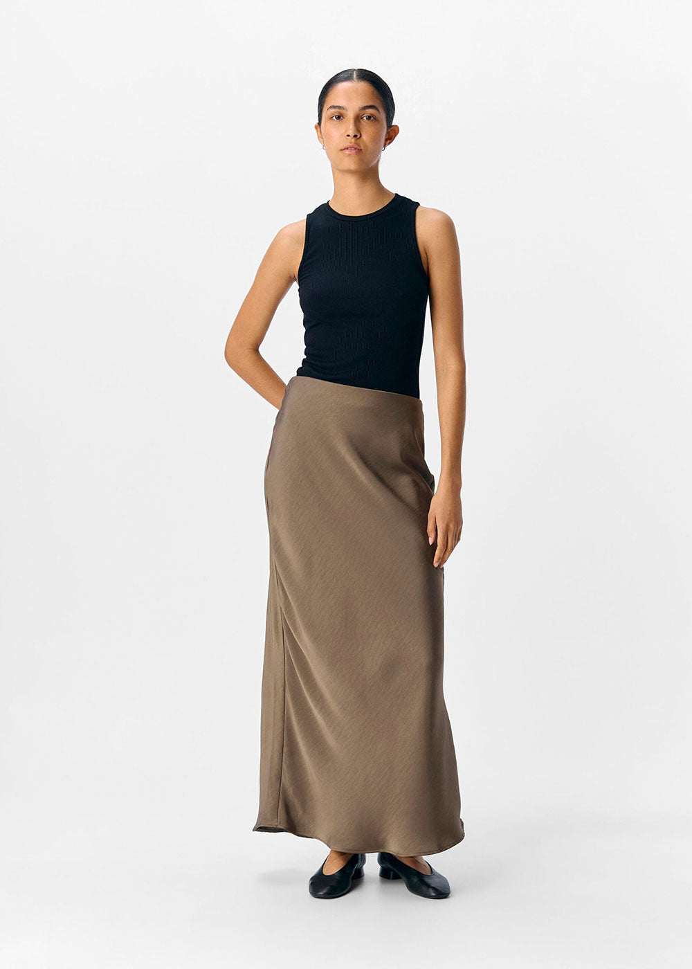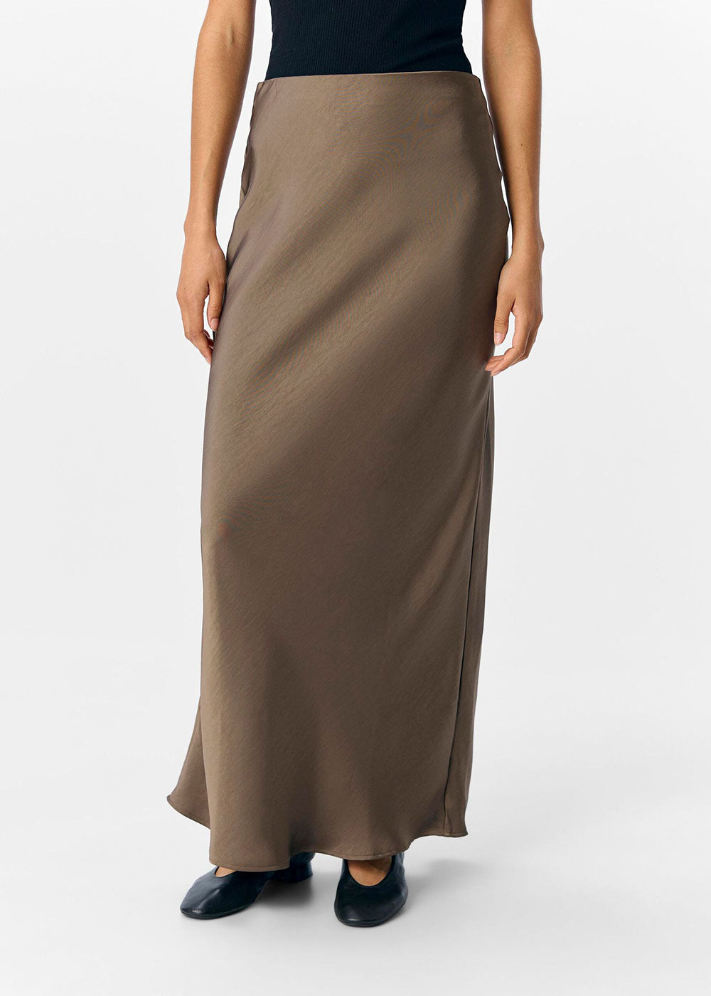 OBJECT Chilli Satin Maxi Skirt - Mauve Wine