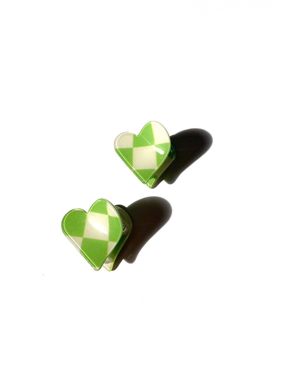 Solar Eclipse 2pc Checkered Heart Mini Claw Hair Clips Set - Green