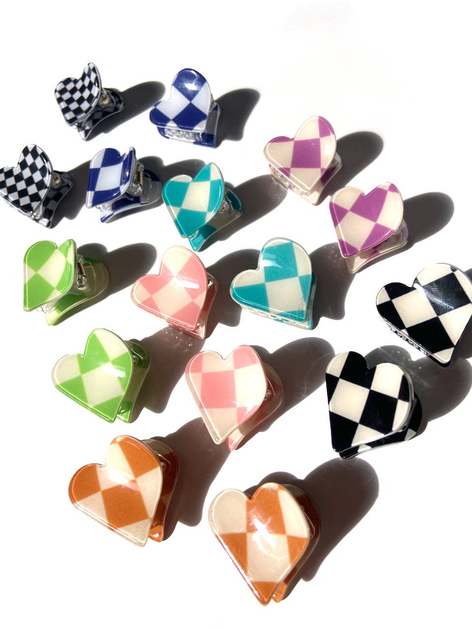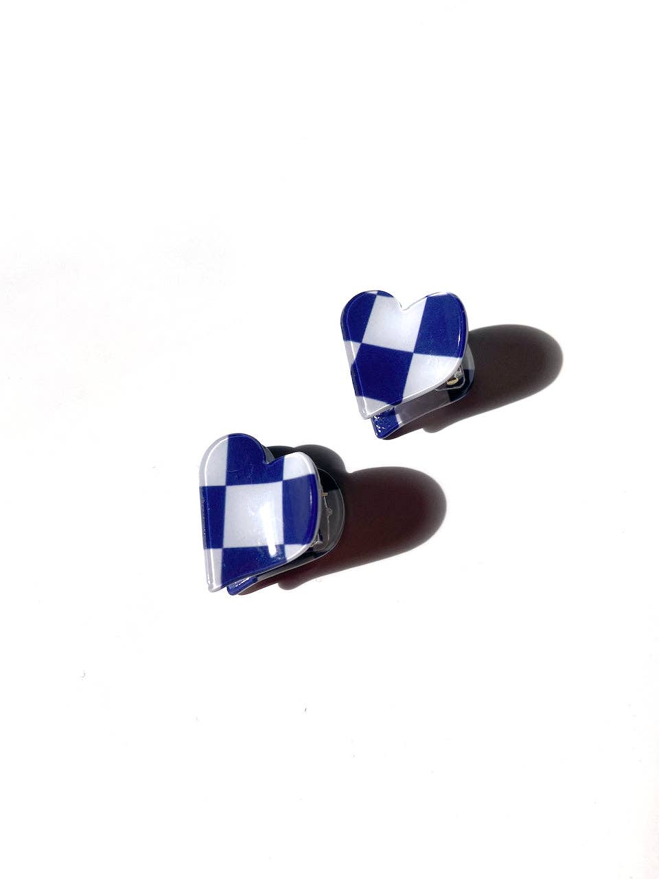 2pc Checkered Heart Mini Claw Hair Clips Set - Navy