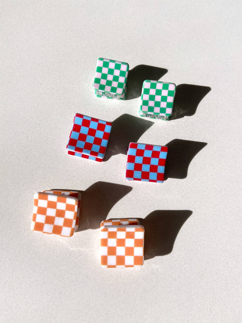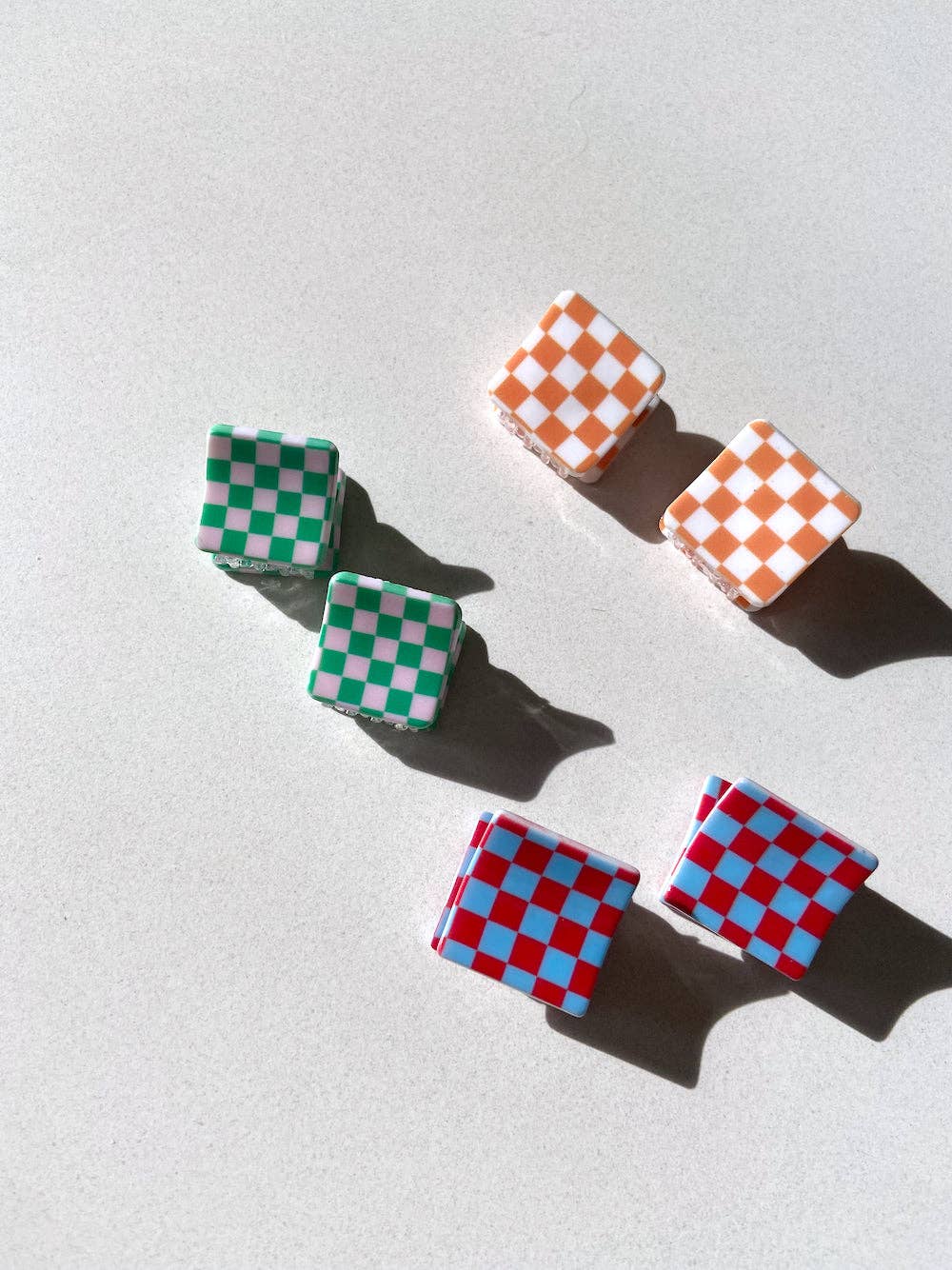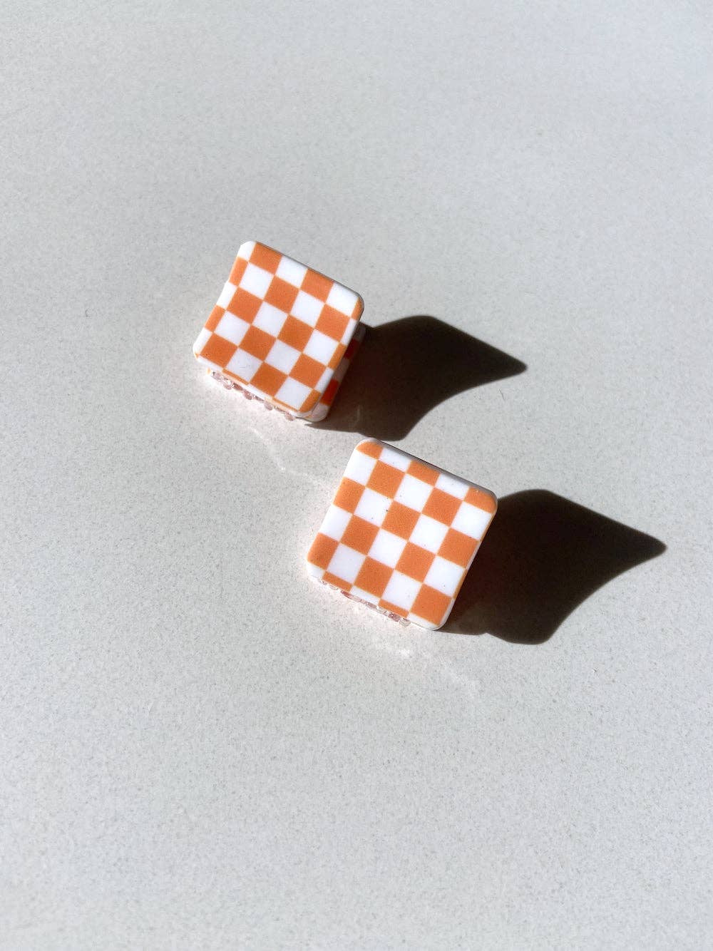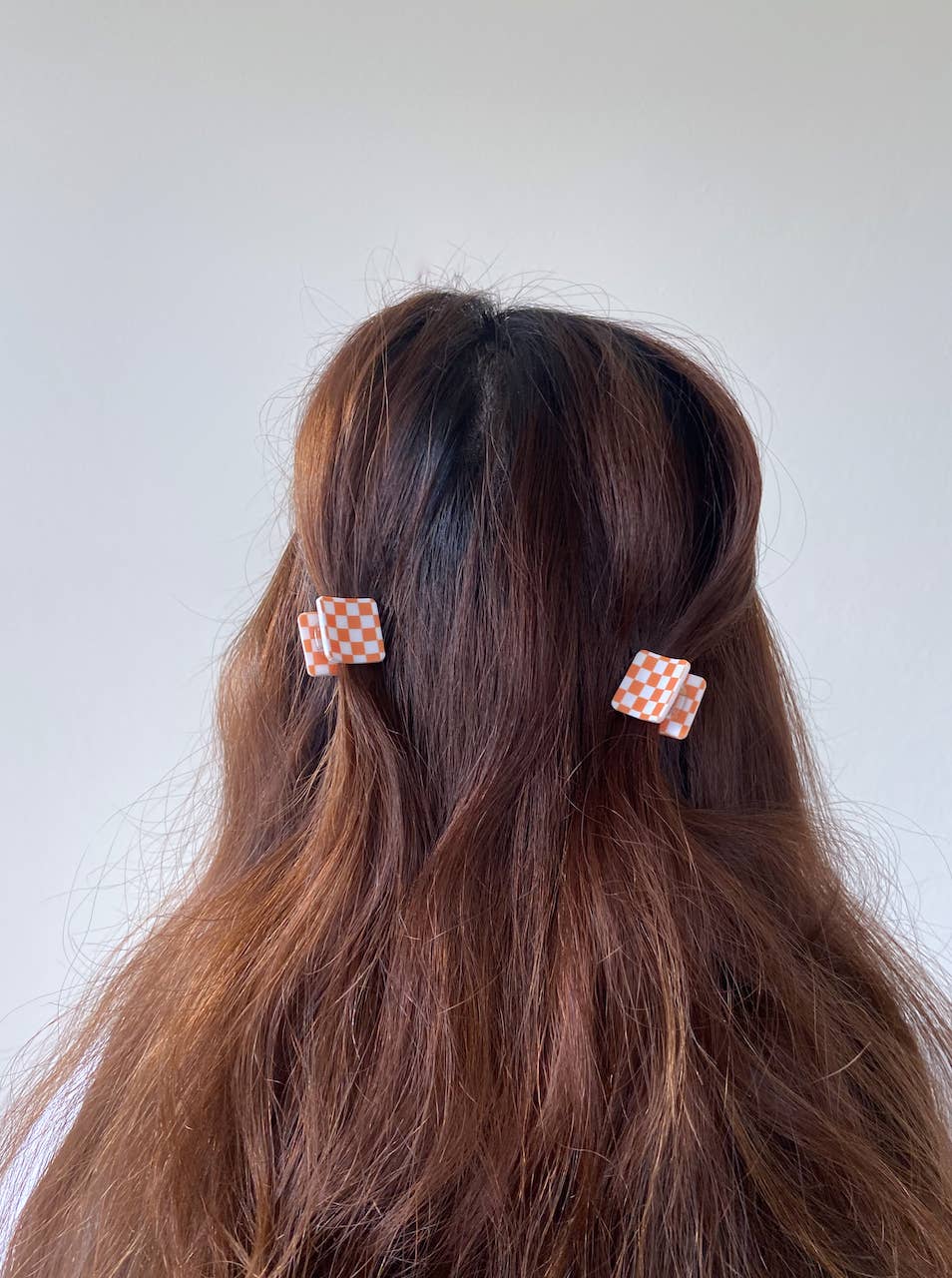 SOLAR ECLIPSE 2pc Checkered Mini Claw Hair Clips Set - Orange