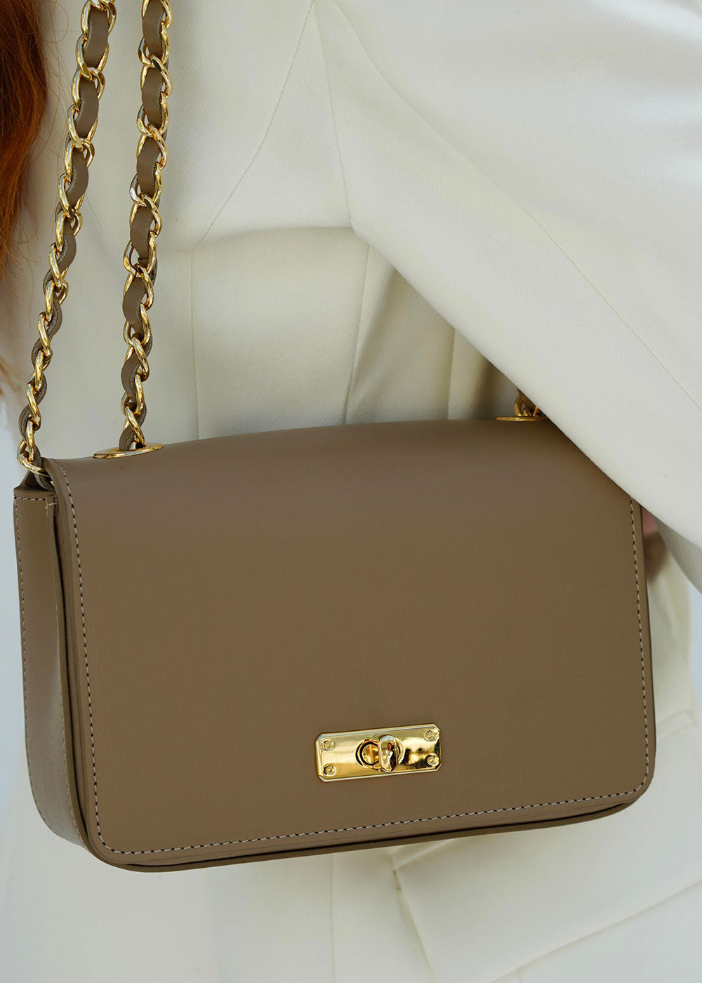 - The Grace leather chain strap bag is made in Italy.