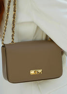 Its refined design is accentuated by a sleek front flap, secured with a striking gold twist-lock clasp, while the leather-plaited chain strap adds a sophisticated touch. Whether dressed up or down, the Grace Bag elevates any ensemble, making it a must-have for any occasion.