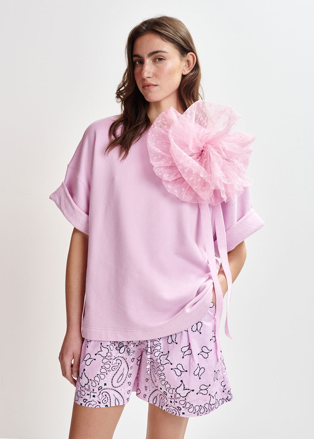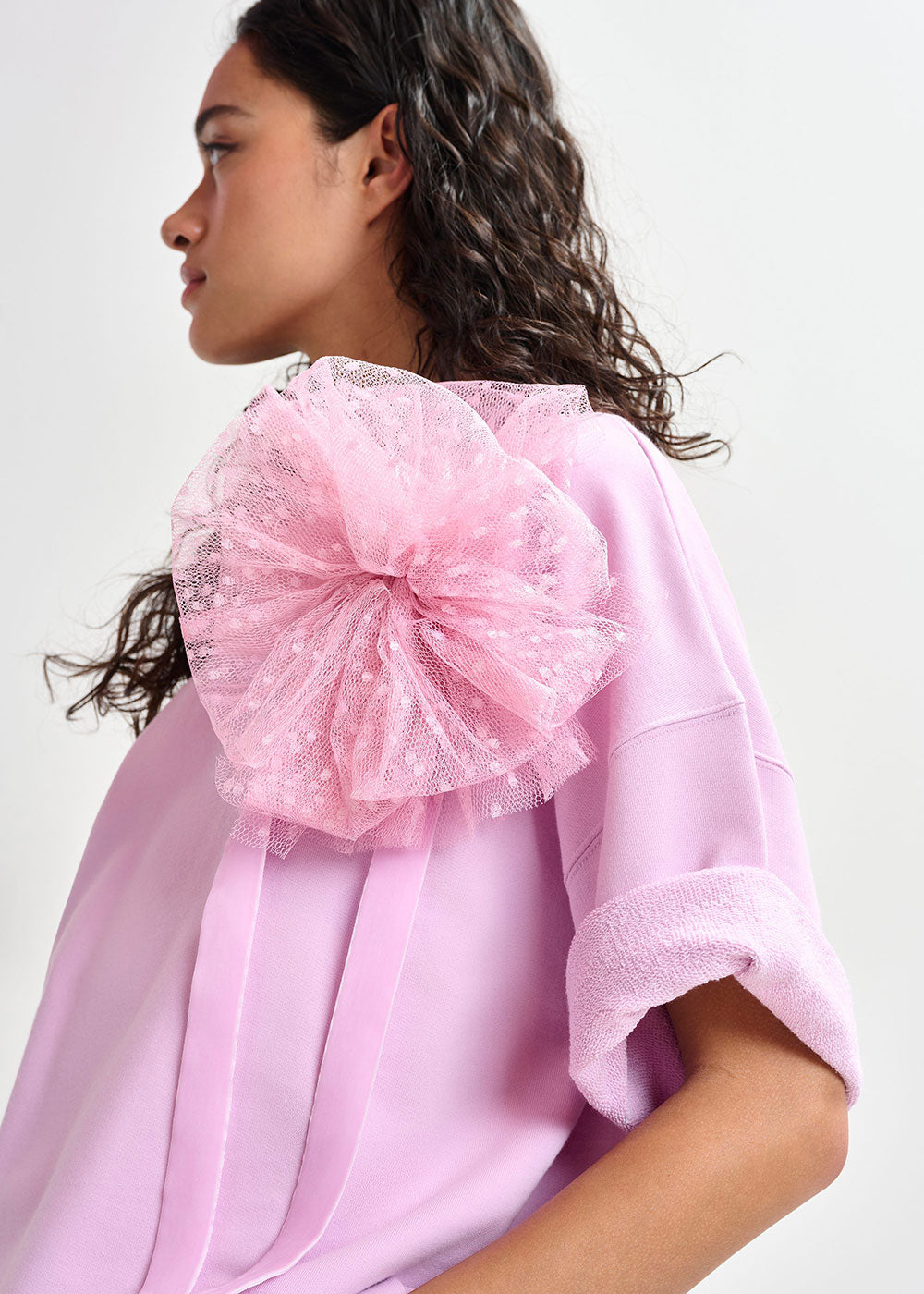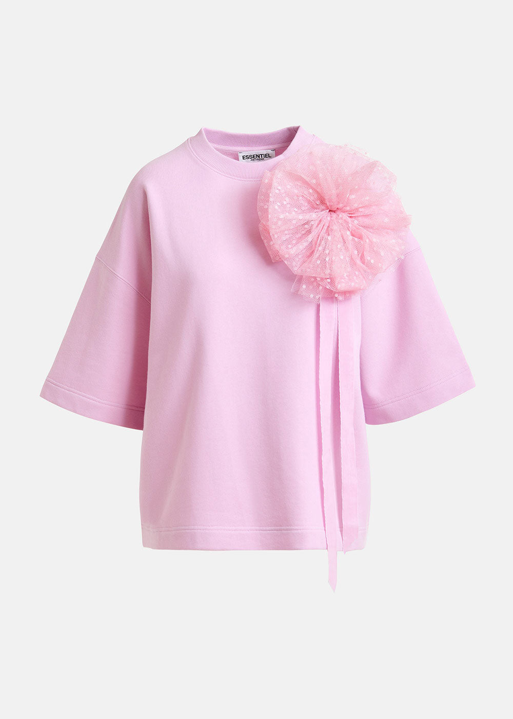 ESSENTIEL ANTWERP Light pink sweatshirt with removable mesh brooch