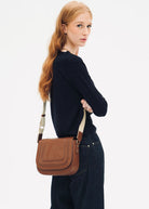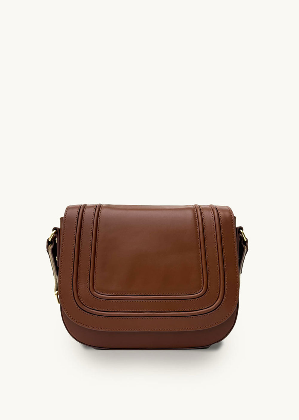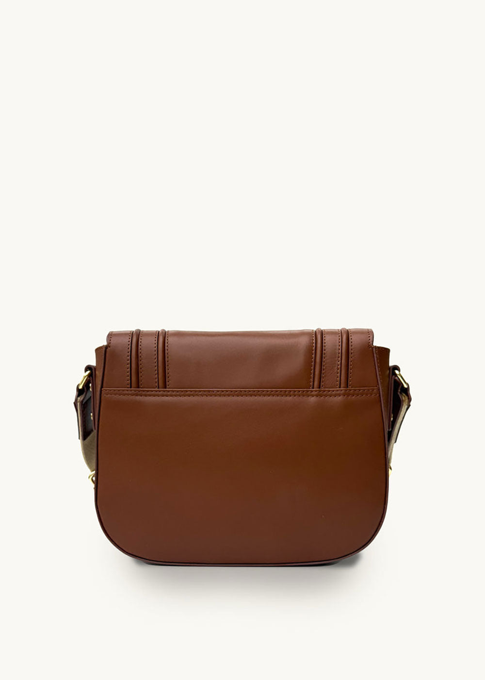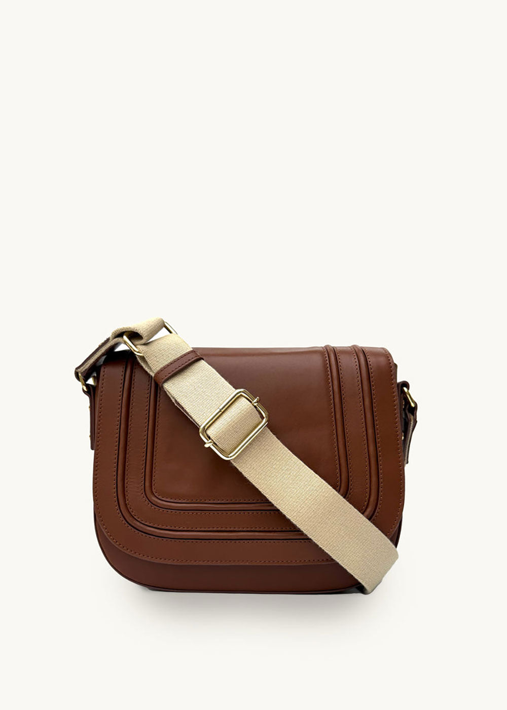 With its clean, rounded lines and intricate saddle stitching, the Mimi Maxi showcases a refined yet relaxed design. The adjustable canvas strap allows for versatile wear, offering comfort whether carried over the shoulder or styled as a cross-body bag.