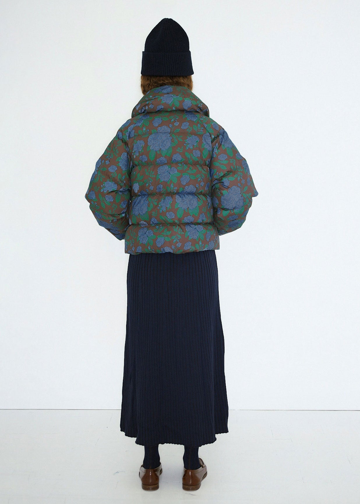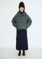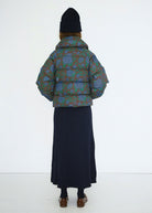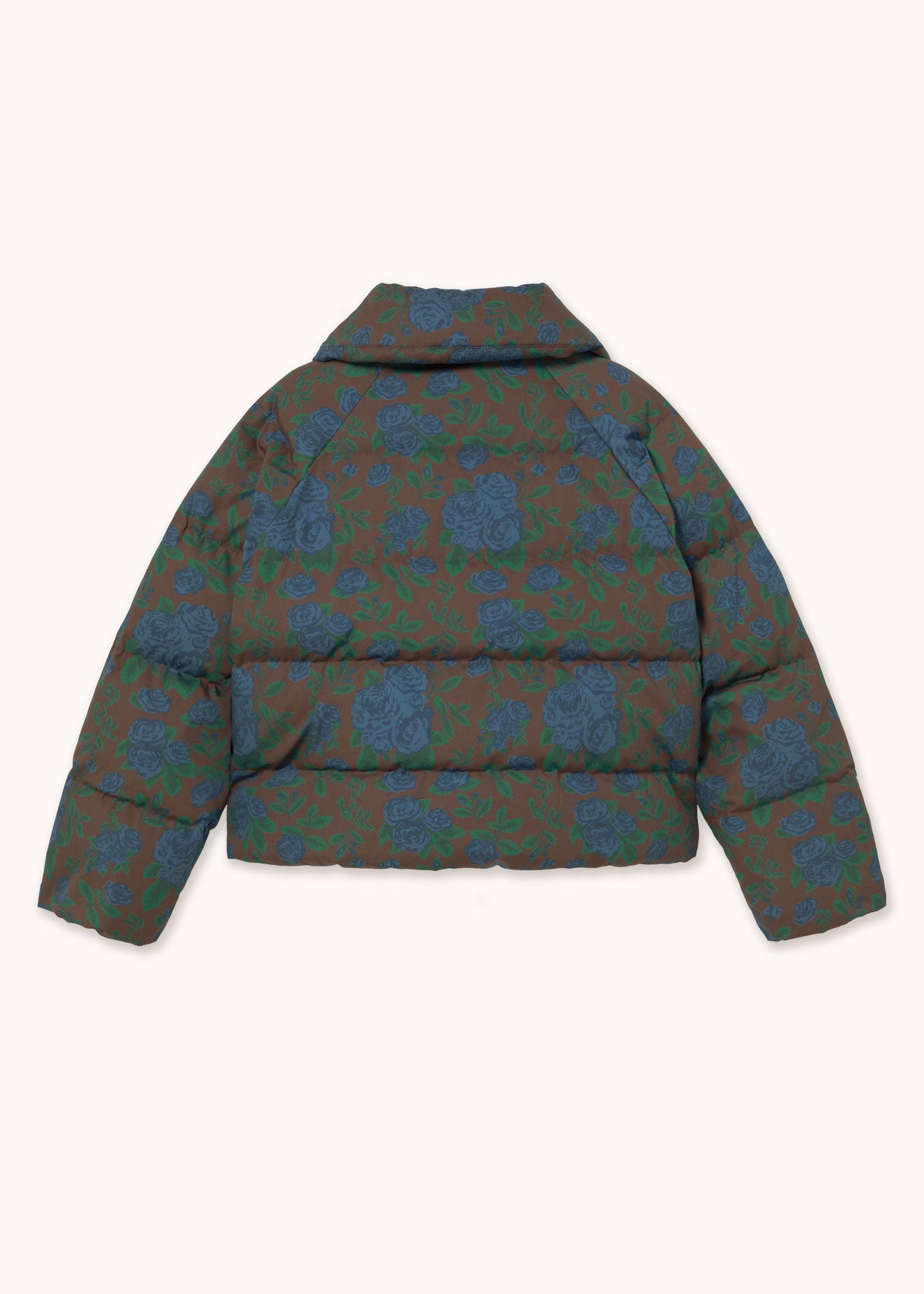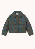 Crafted from premium cotton with a dark brown floral print, this jacket is designed with a round collar, snap button closure, sherpa-lined welt pockets, and an inner welt pocket. Padded with down for added warmth and finished with a water-resistant treatment, it delivers a refined, cozy silhouette that blends everyday comfort with timeless style.