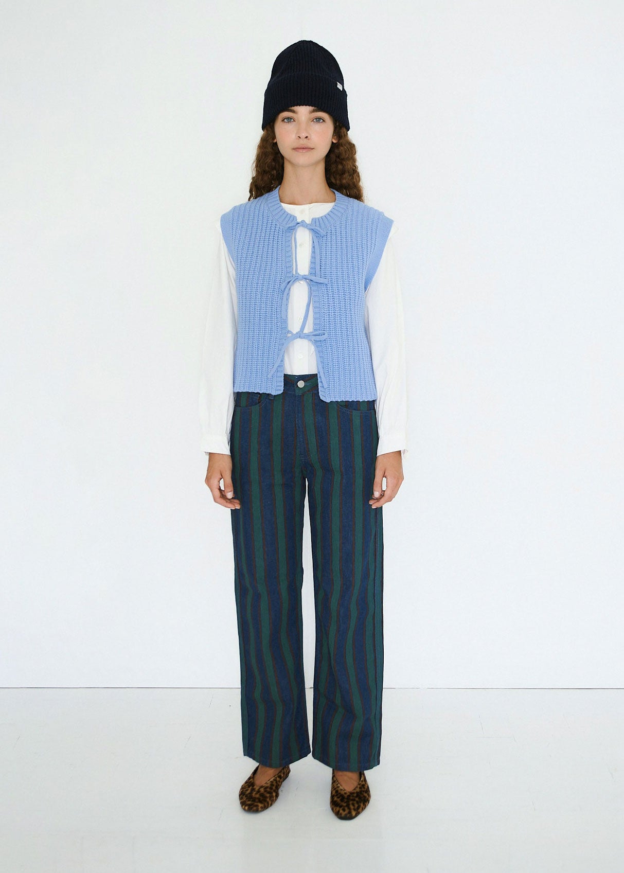 THE TINY BIG SISTER Tie Detail Vest - Denim Blue
