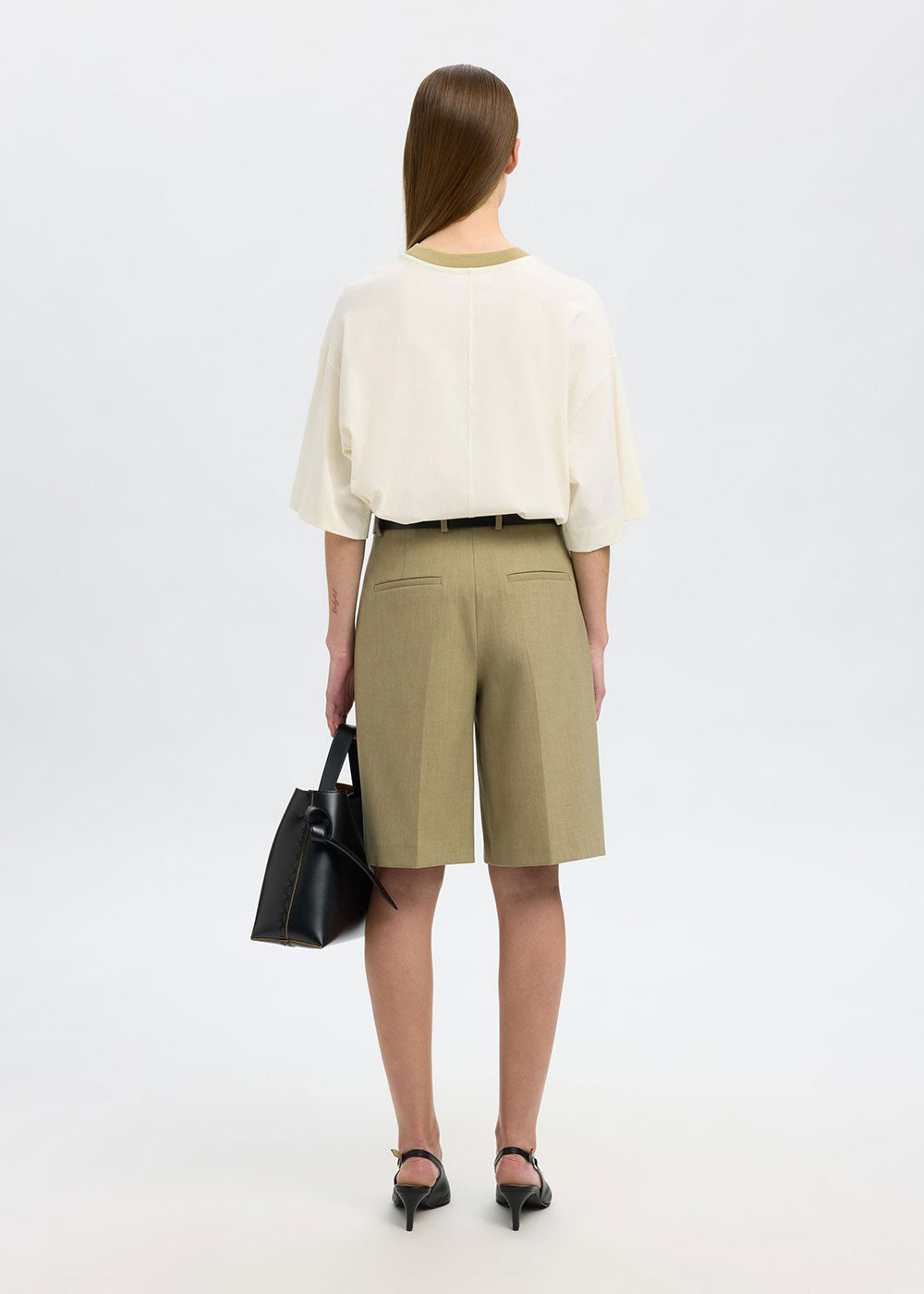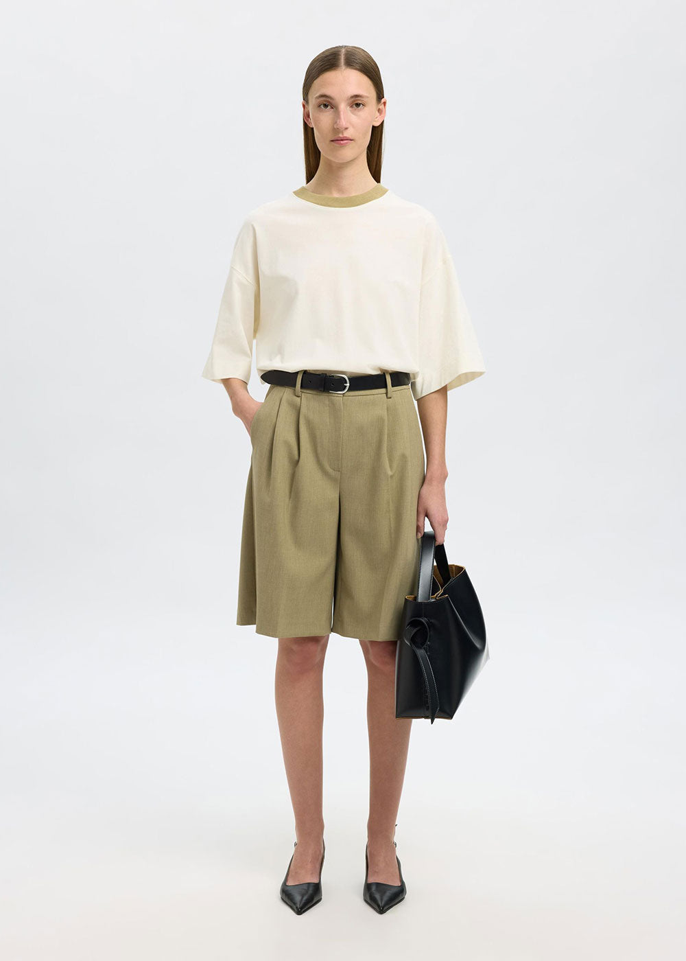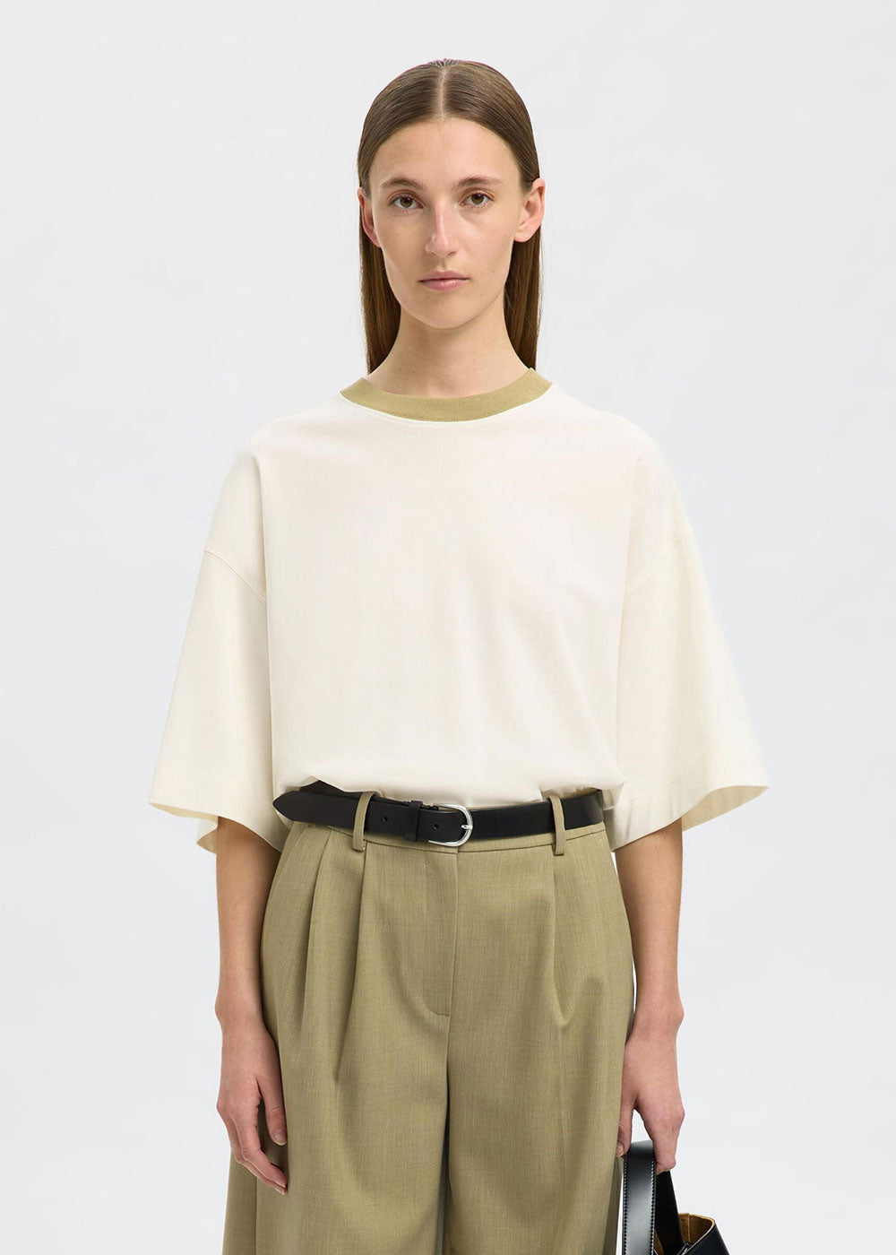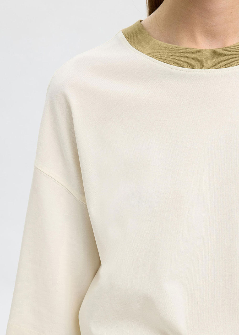 SELECTED FEMME SLF Colwoman 2/4 Oversized Contrast T-Shirt - Egret