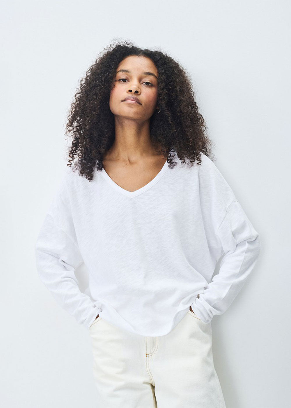 AMERICAN VINTAGE Sonoma Long Sleeve V-Neck T-shirt - White