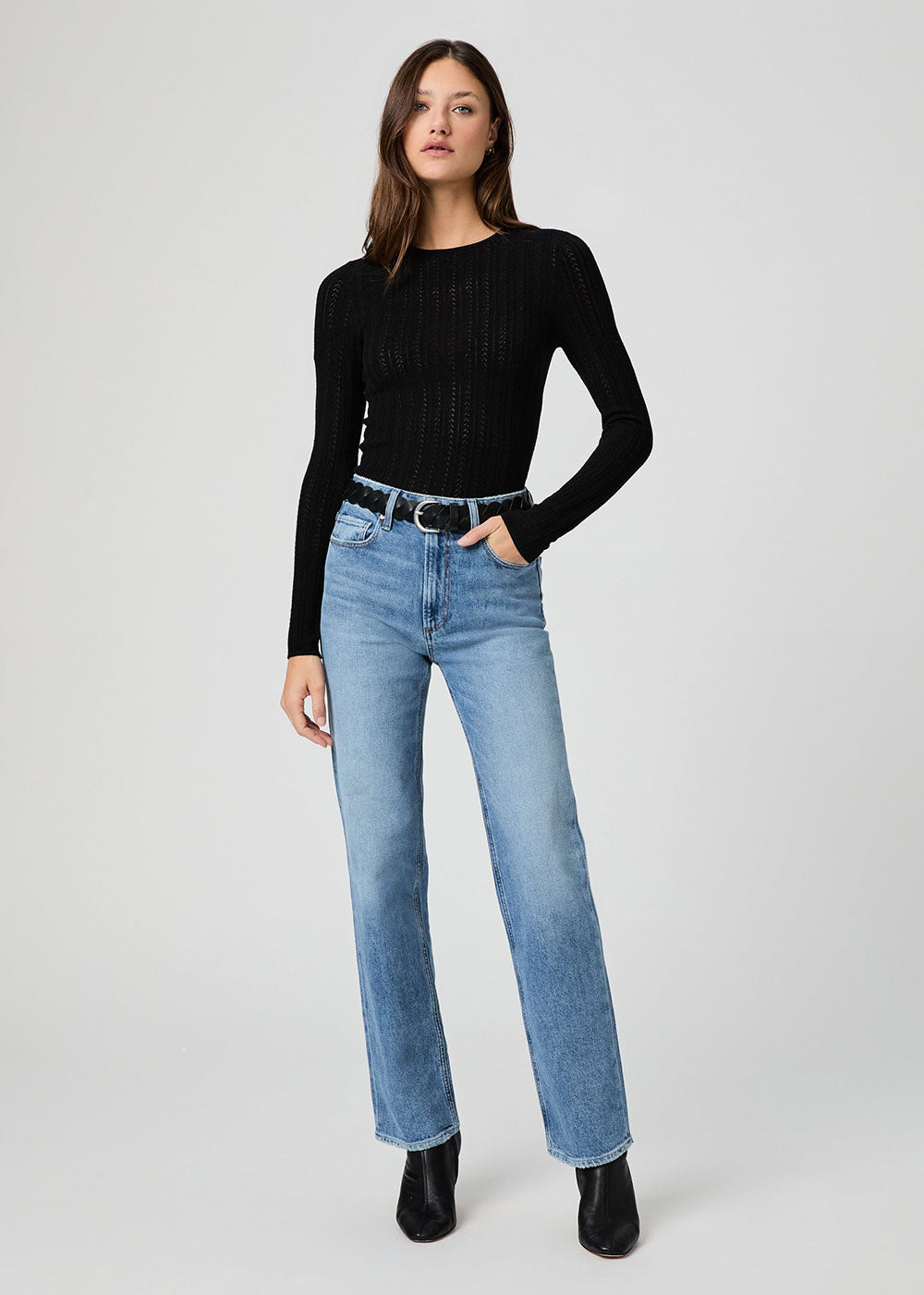 Stevie is our high-rise straight leg with a 31" inseam. This style is cut from PAIGE VINTAGE denim in a light vintage-inspired wash with lived-in details. PAIGE VINTAGE takes all the work out of breaking in your favorite pair of vintage jeans. We've combined the comfort of stretch with everything you love about authentic vintage denim to create super soft jeans that feel perfectly lived-in from the very first wear.