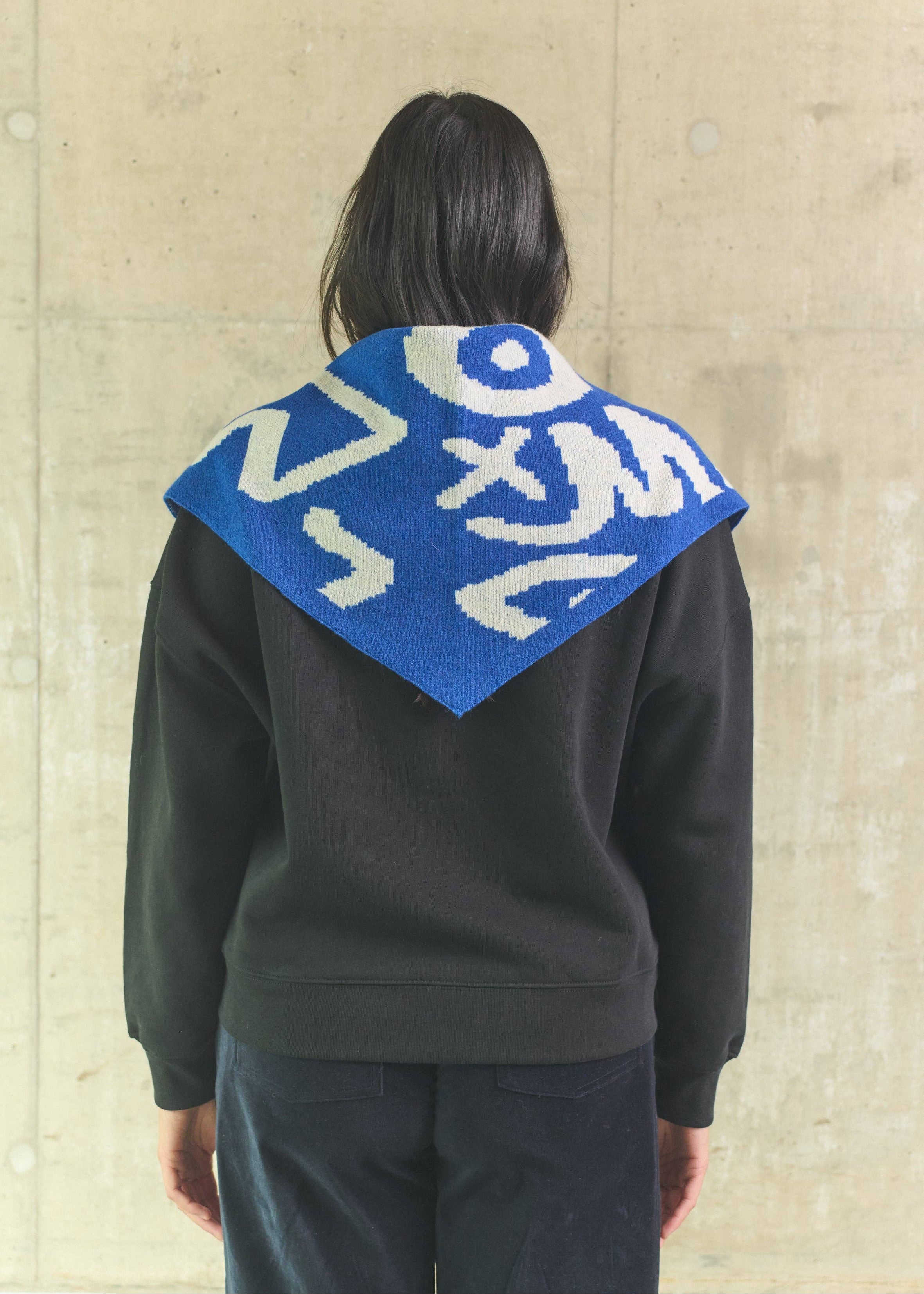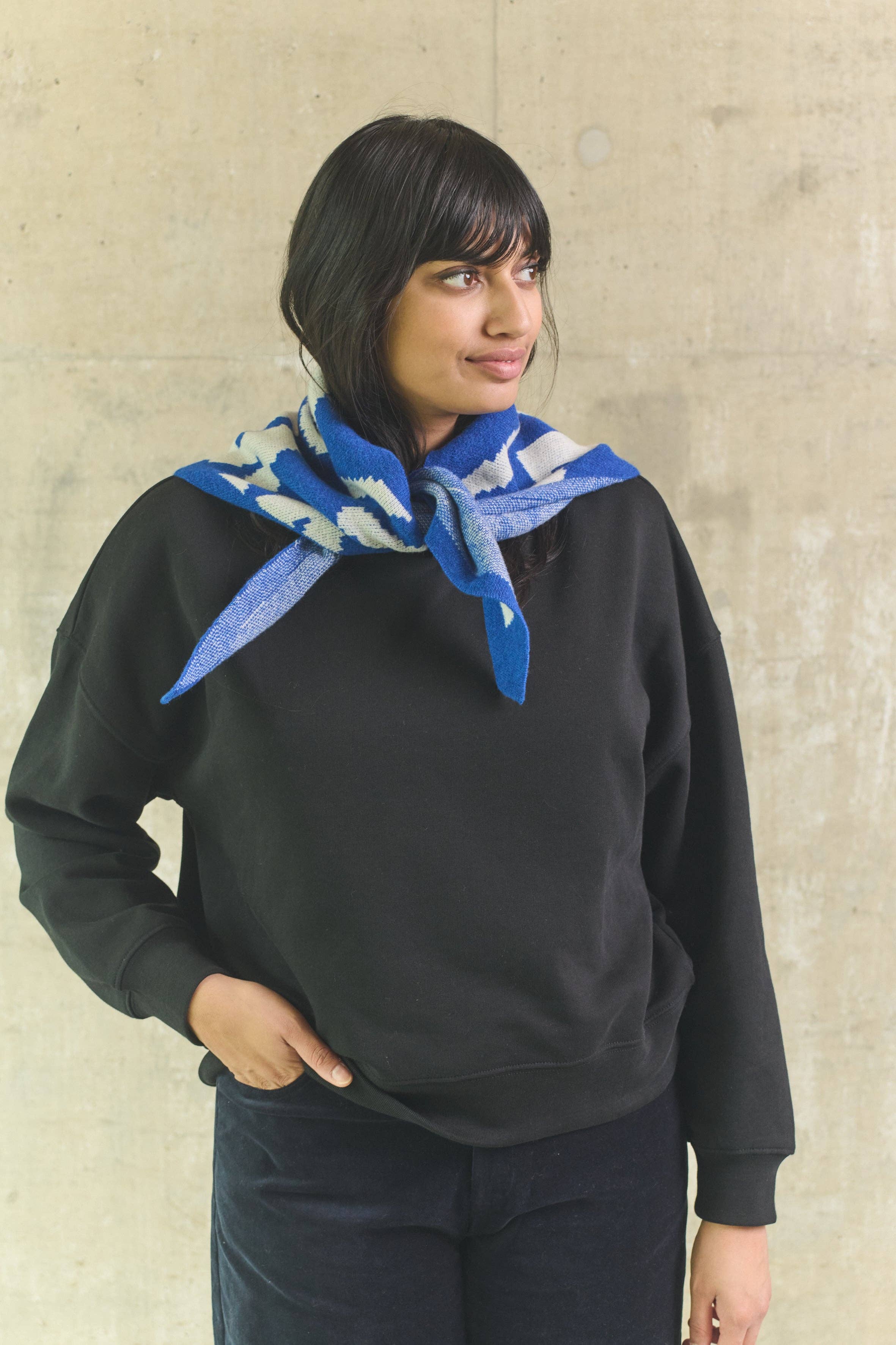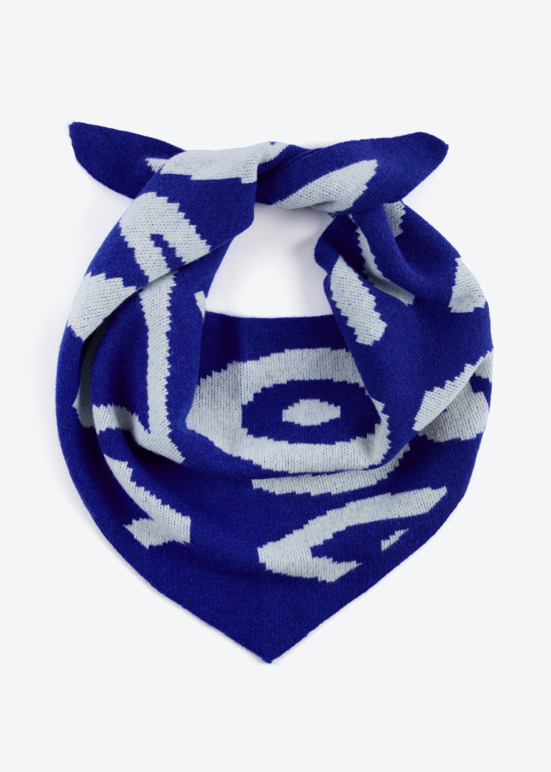 MISS POMPOM 90's Doodle Blue Wool Triangle Scarf