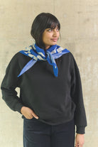 Bring back the playful spirit of the ’90s with the 90’s Doodle Blue Wool Triangle Scarf. A bold blue base is scattered with oversized white doodles – zig-zags, squiggles, and abstract shapes that feel straight out of a sketchbook. Graphic and full of character, it’s a statement accessory that adds instant personality to any look. With its versatile triangle shape, this scarf can be styled in multiple ways: drape it loosely over your shoulders, tie it over your head for a retro twist, or secure it with a pin to create a sharp, modern finish.