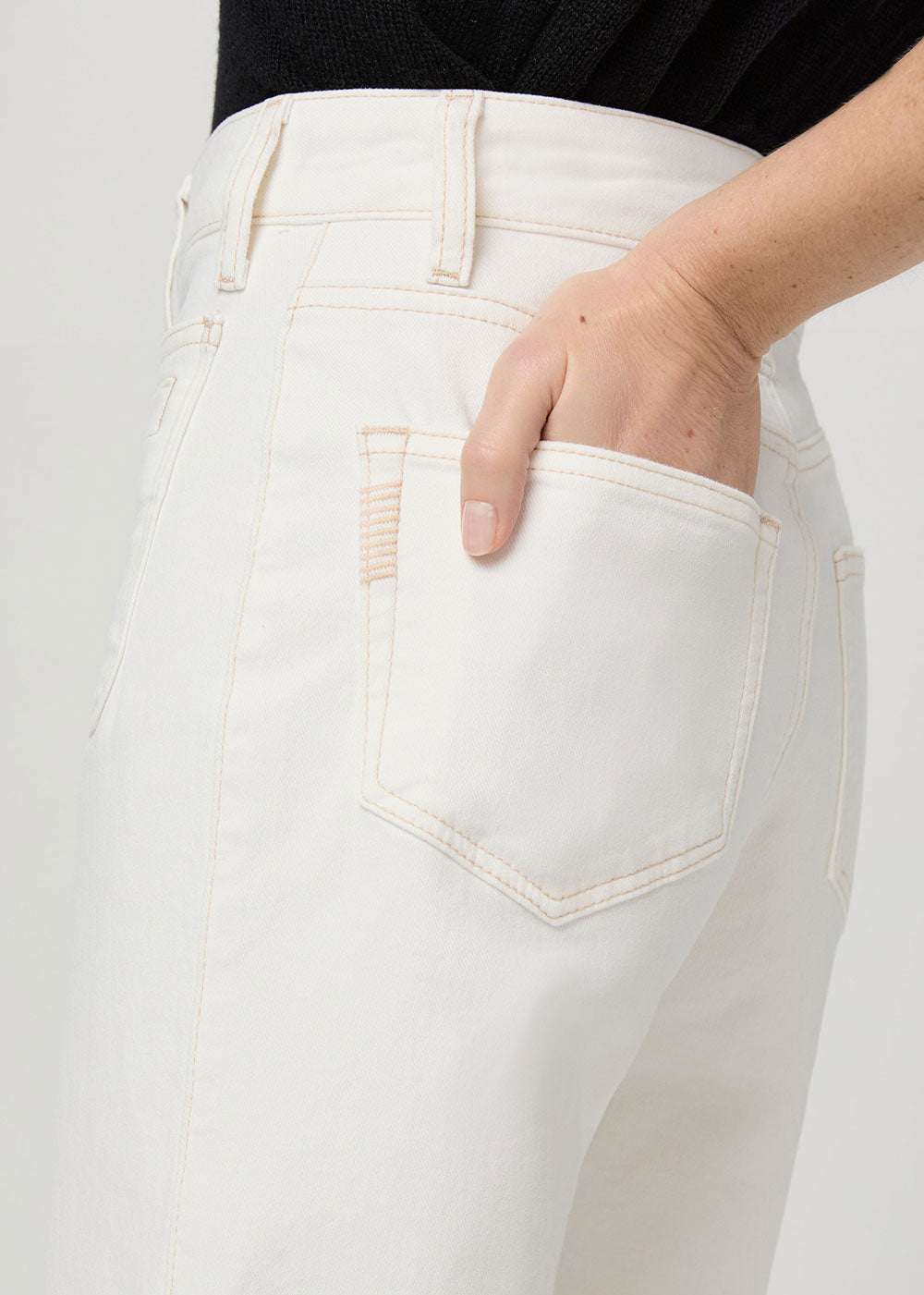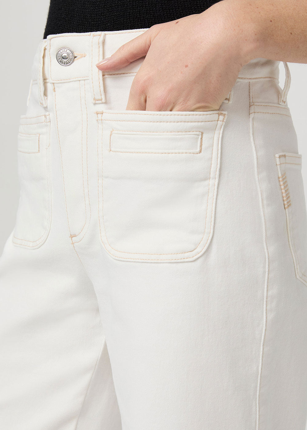 Anessa is our modern high-waisted wide leg with a slightly relaxed fit and an ankle-length silhouette for an effortlessly chic look. This pair comes in toasted ecru with welt patch pockets and a wide hem, and is crafted from comfort stretch denim with plenty of coverage and the perfect amount of stretch.