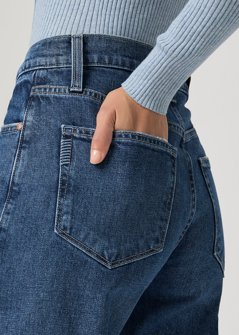 The Arellia Ankle is our high-rise barrel leg silhouette with a cropped ankle-length inseam. This elevated style is cut from PAIGE VINTAGE denim in a clean and classic dark vintage-inspired wash. PAIGE VINTAGE takes all the work out of breaking in your favorite pair of vintage jeans. We've combined the comfort of stretch with everything you love about authentic vintage denim to create super soft jeans that feel perfectly lived-in from the very first wear.