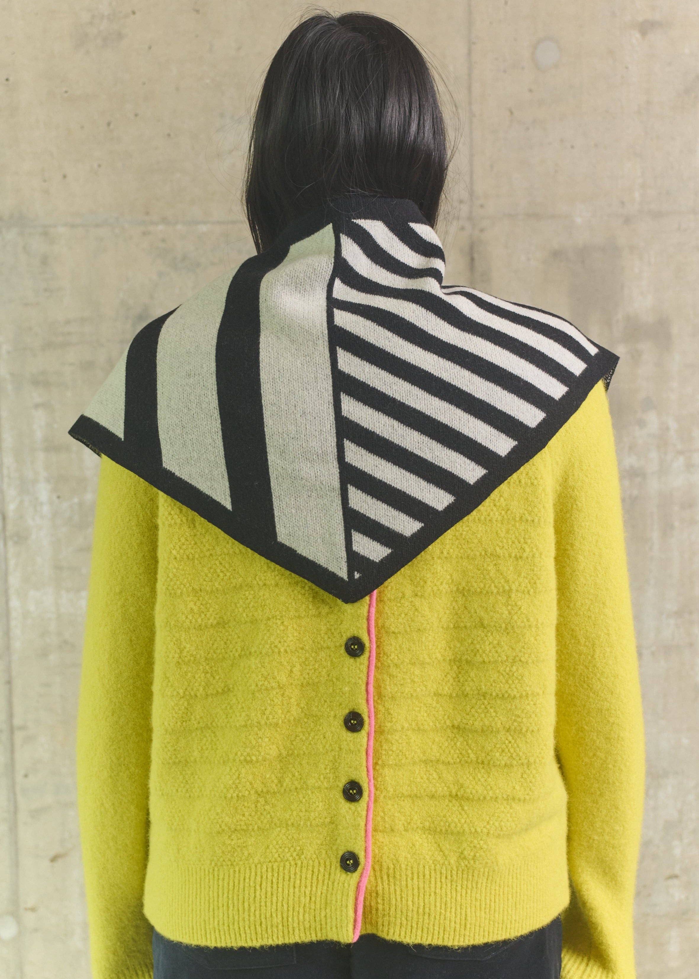 Designed in London and thoughtfully knitted in a small, family-run factory in Istanbul, the Black & White Stripe Scarf embodies MissPomPom’s love for graphic design and wearable art.