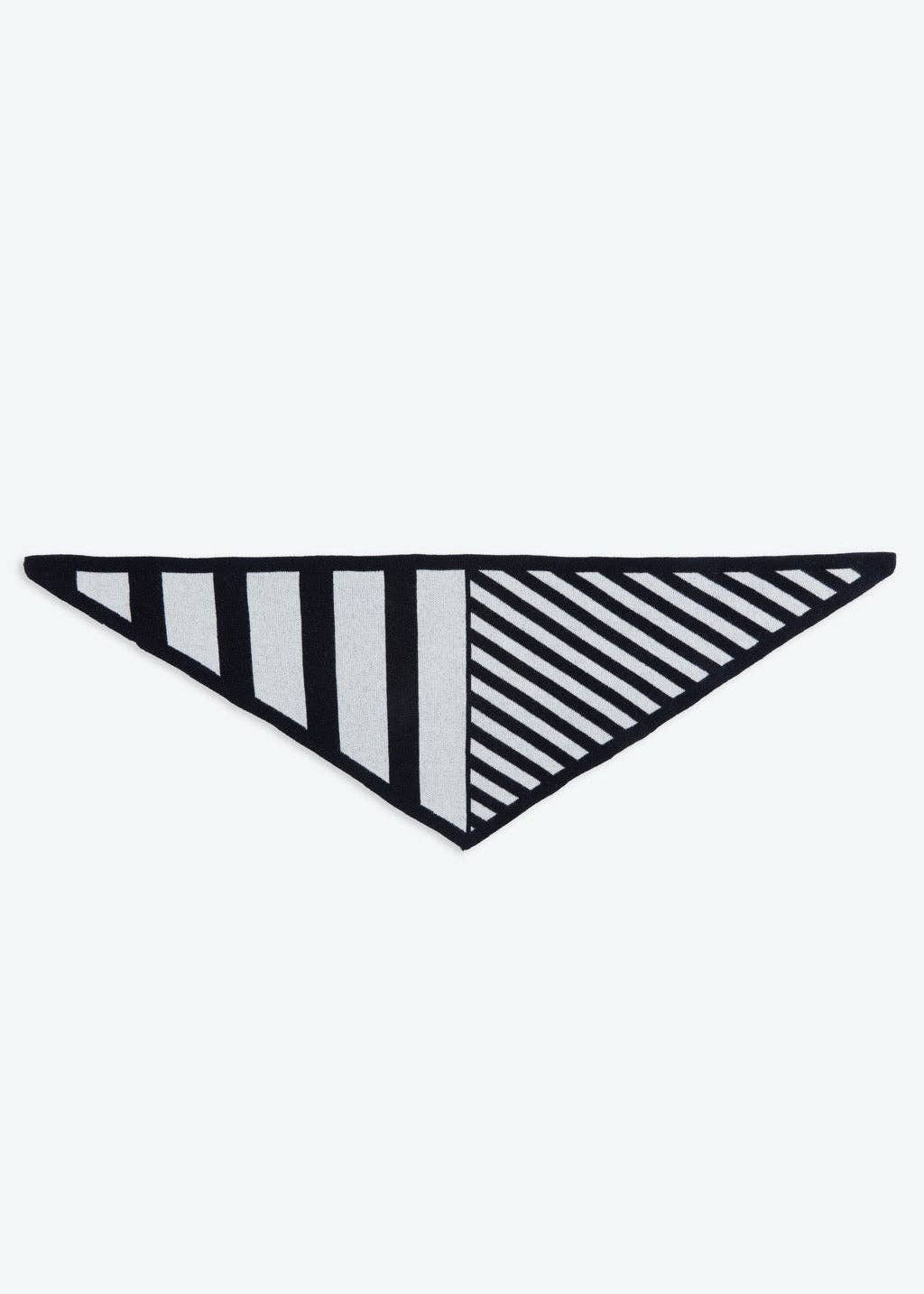 MISS POMPOM Black & White Stripe Wool Triangle Scarf