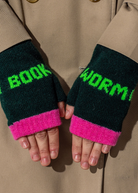 Book Worm Mittens - Forest Green & Neon Green