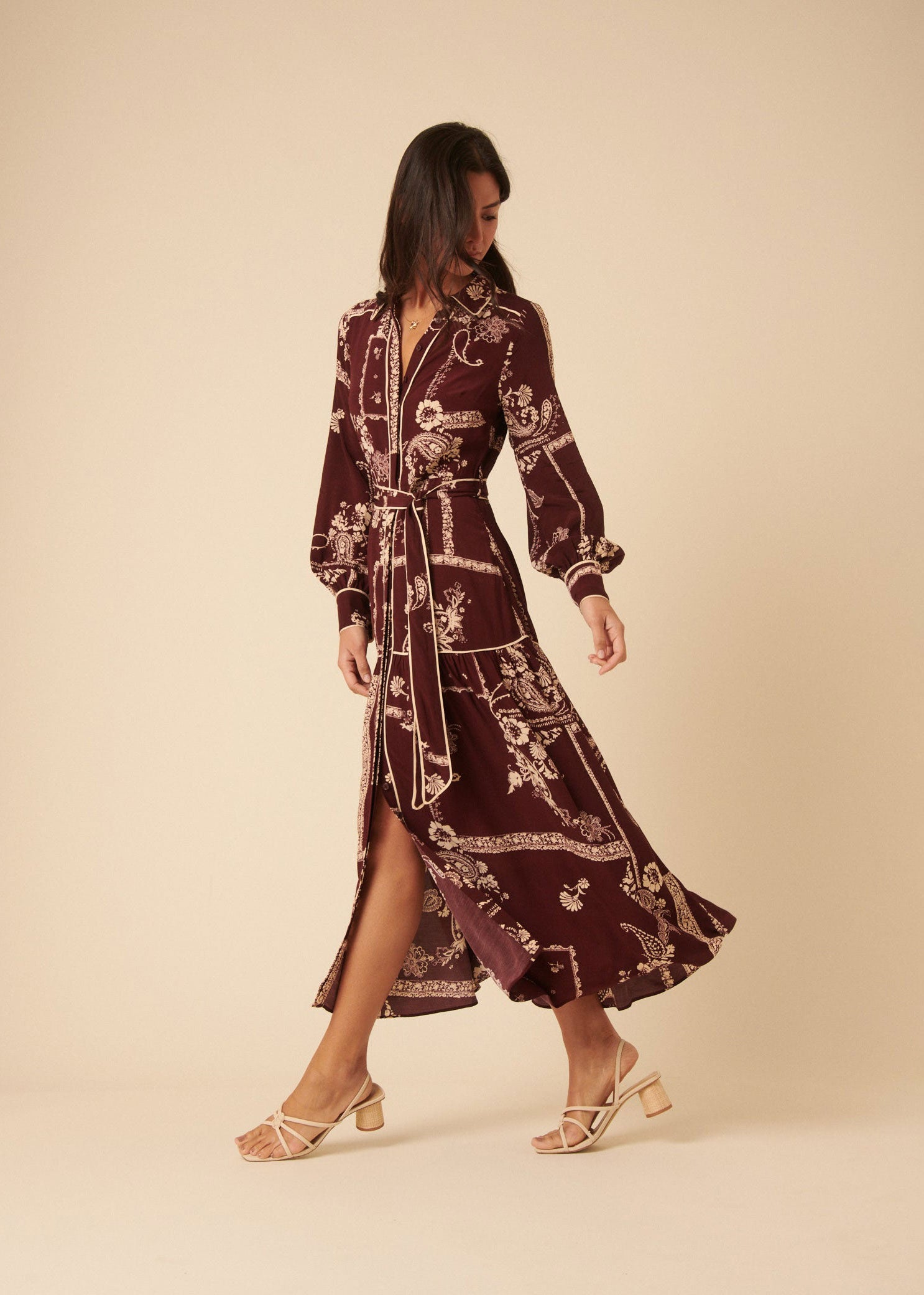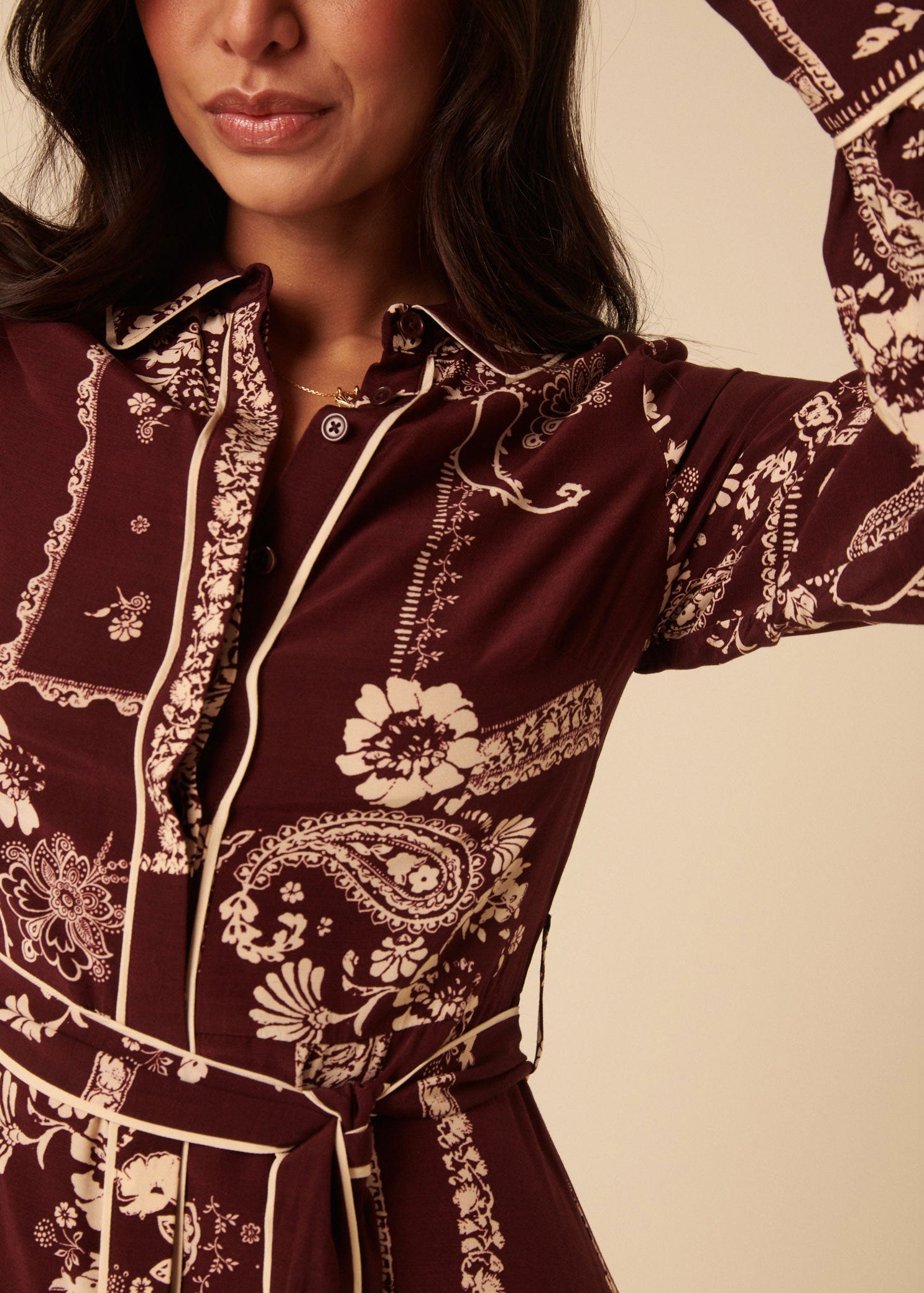 NOBODY'S CHILD Burgundy Printed Brooklyn Midi Shirt Dress
