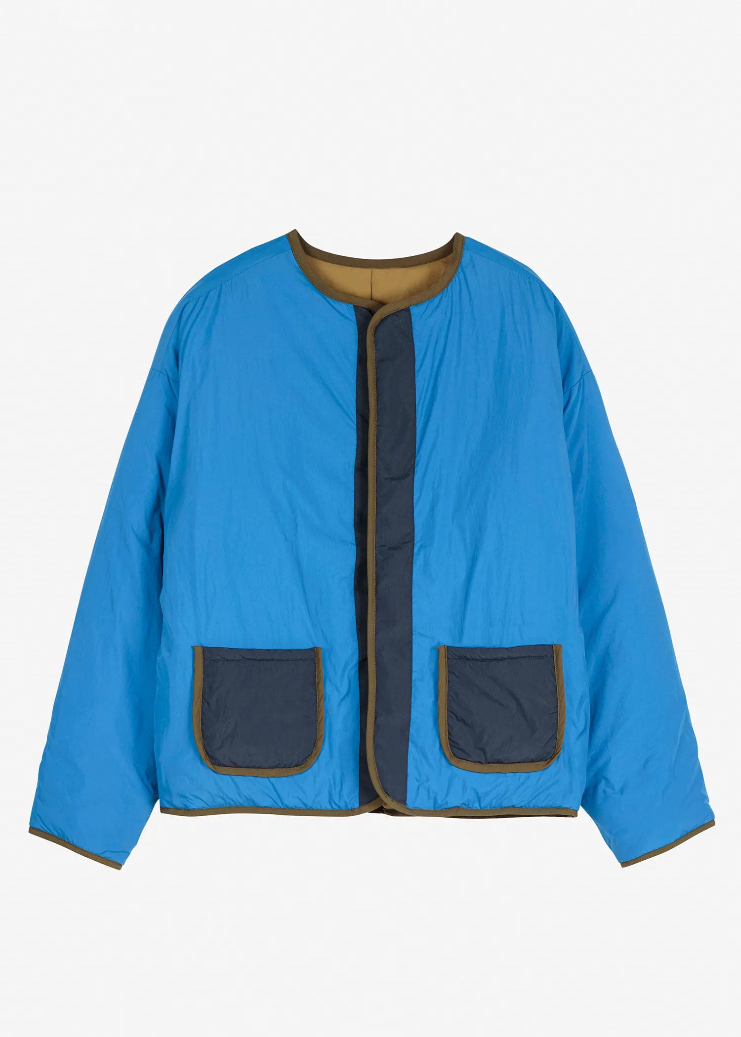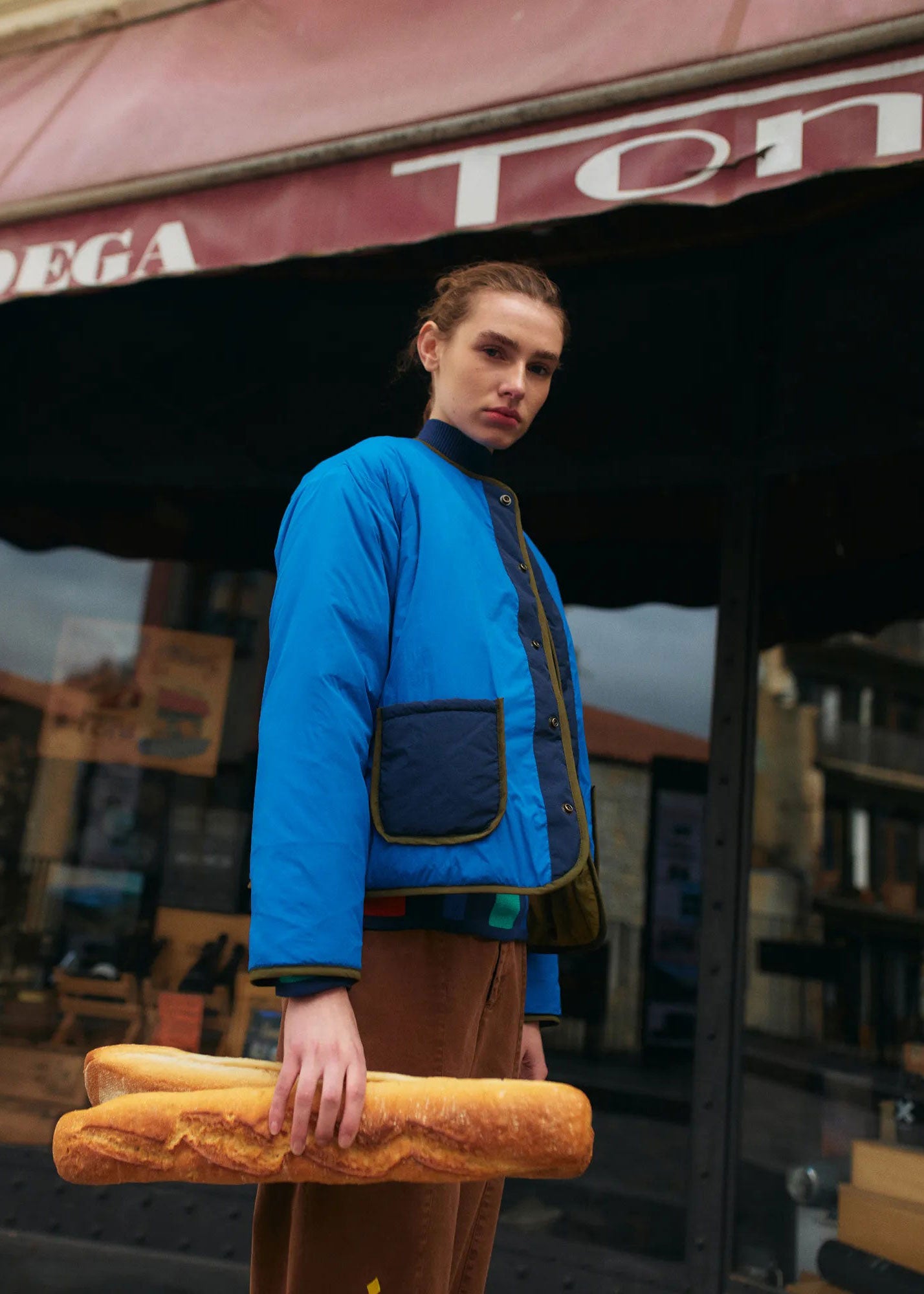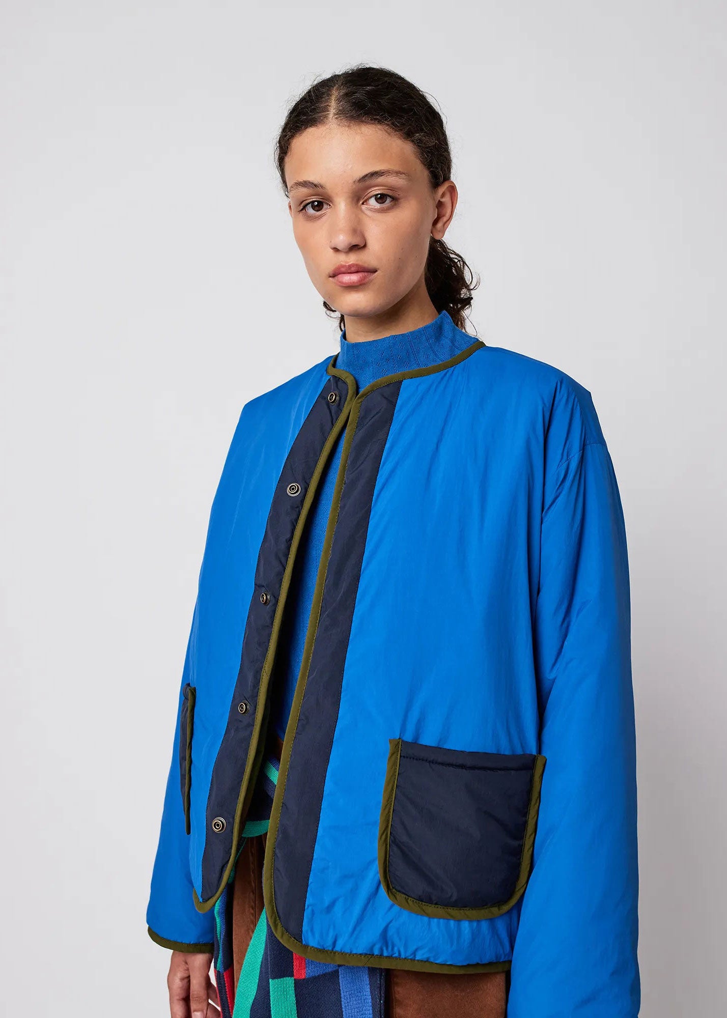 Multicolour jacket. Designed with slightly loose fit, dropped shoulder seam, non stretchy fabric and quilted. Fits true to size, take your normal size. Made in China.