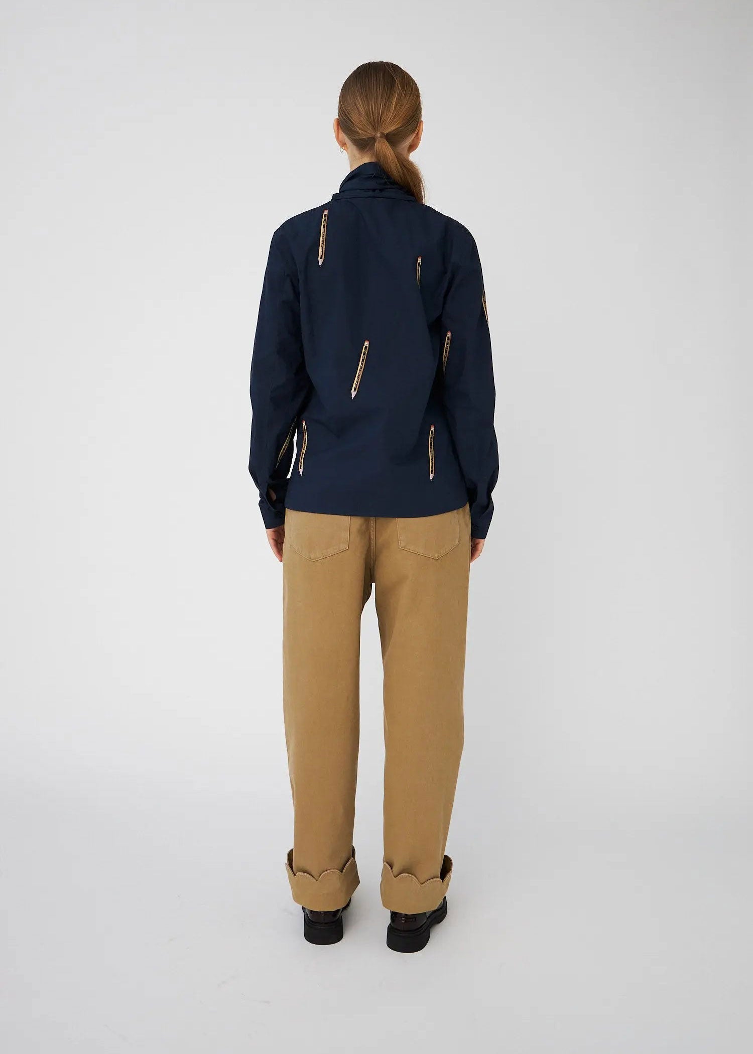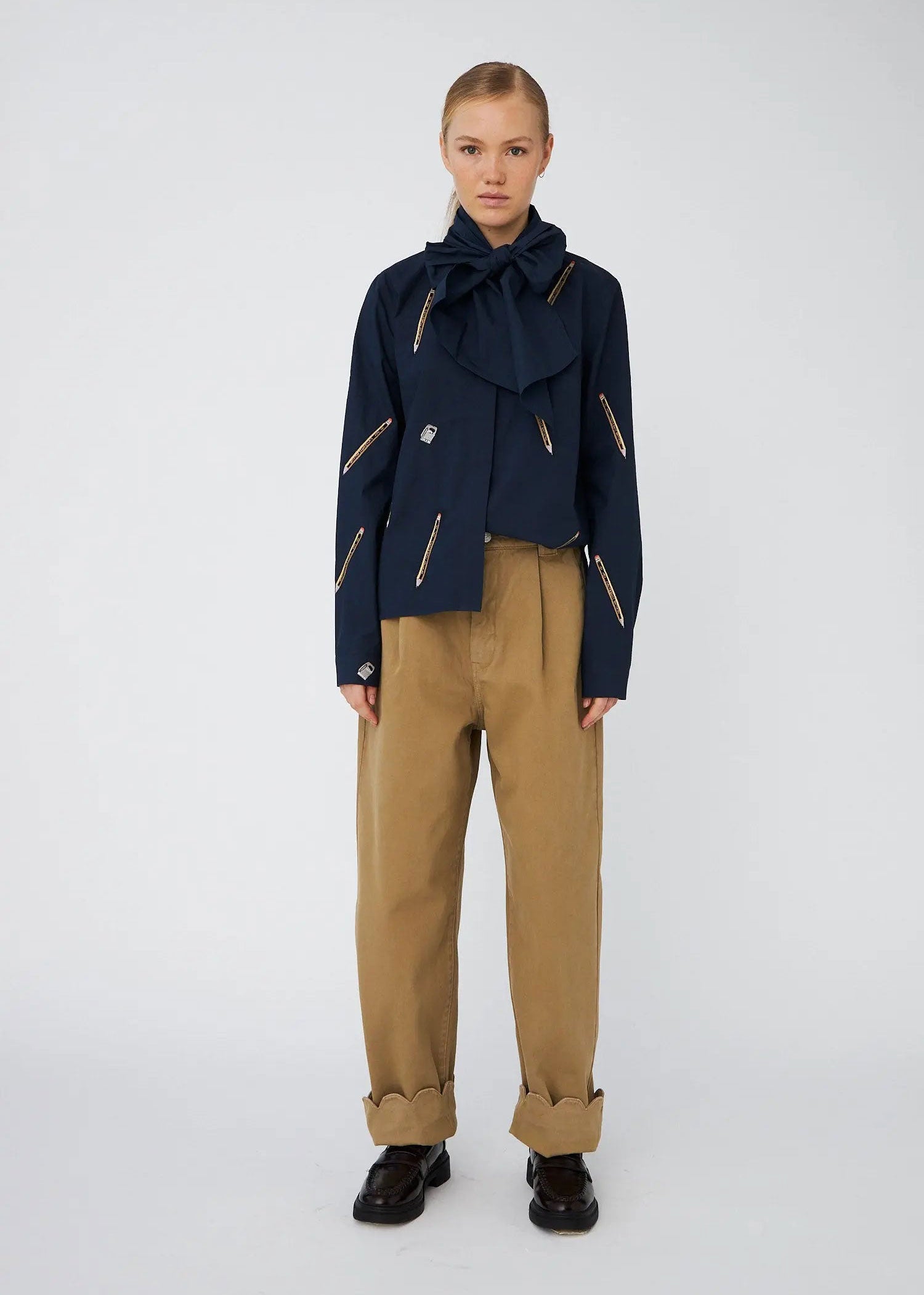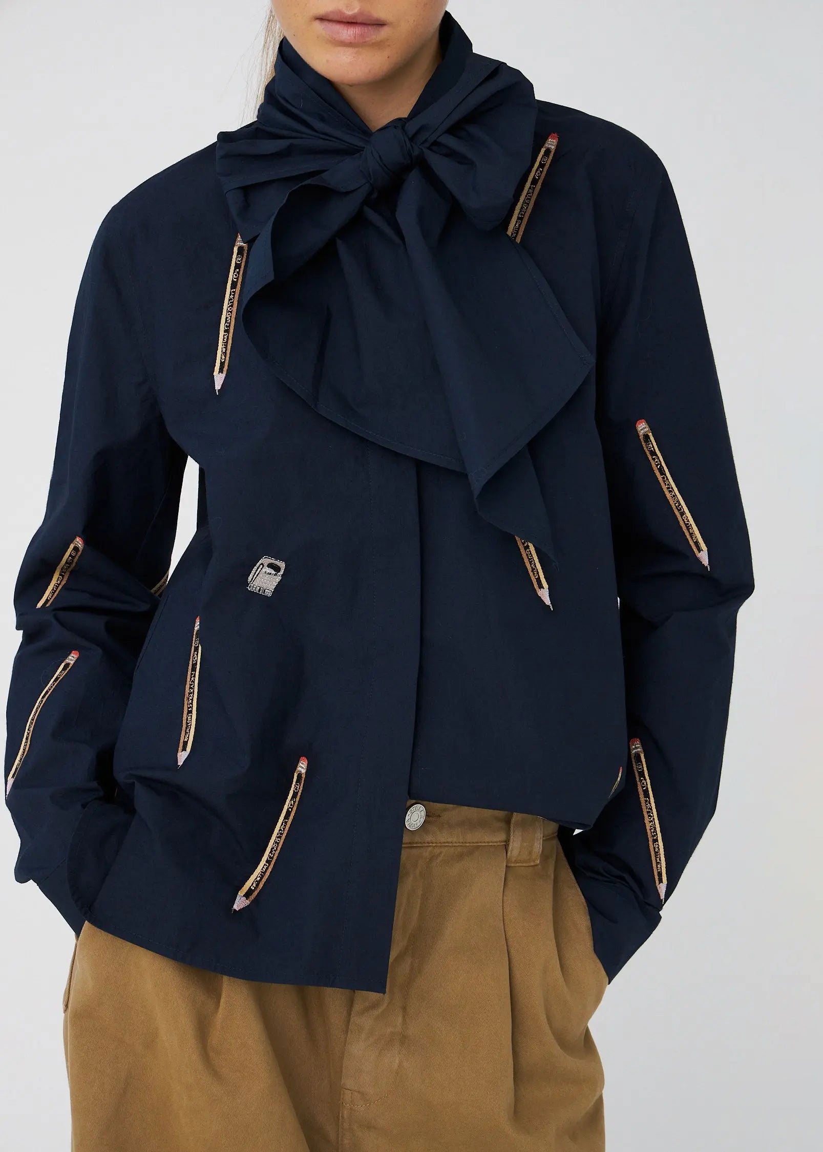 STELLA NOVA Embroidered Cotton Bow Shirt - Navy