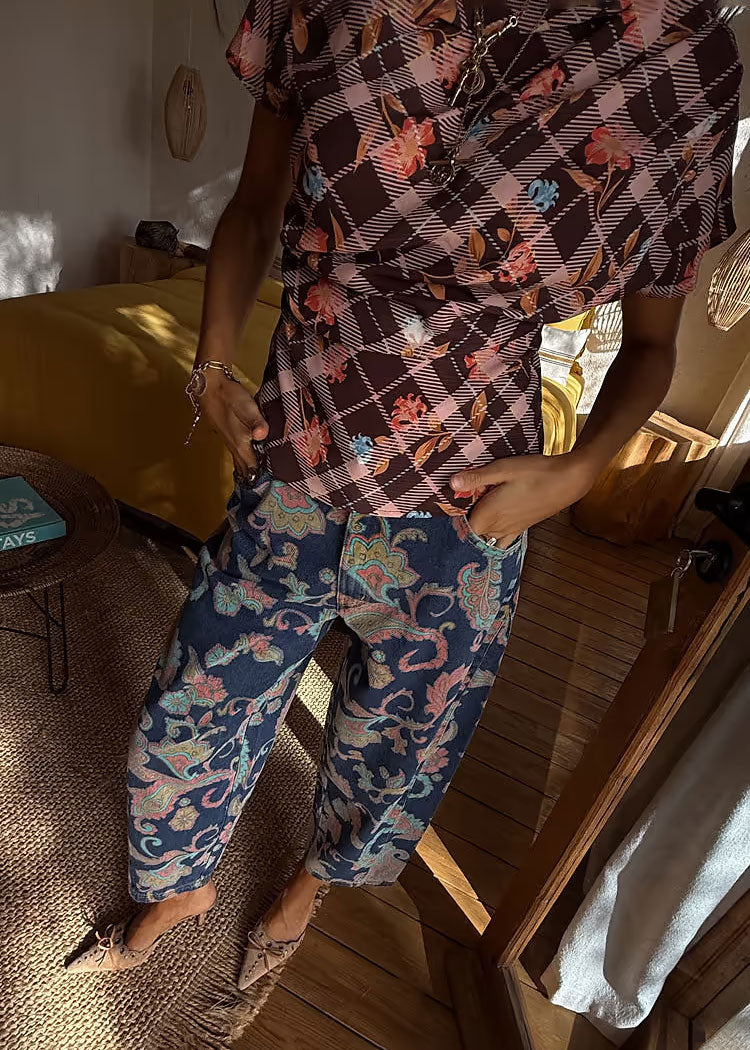 NEVER FULLY DRESSED Denim Paisley Barrel Leg Jeans