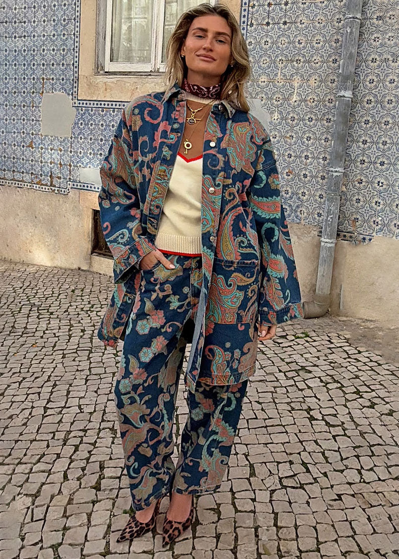 We’re starting the new year with a bang! The barrel leg gives you that chic, relaxed shape while the paisley print adds a pop of colour. Super comfy with a structured fit that still feels effortless. We've styled them with the matching Paisley shacket for the colder seasons but you could also style down with a simple tee and heels, they go with everything!