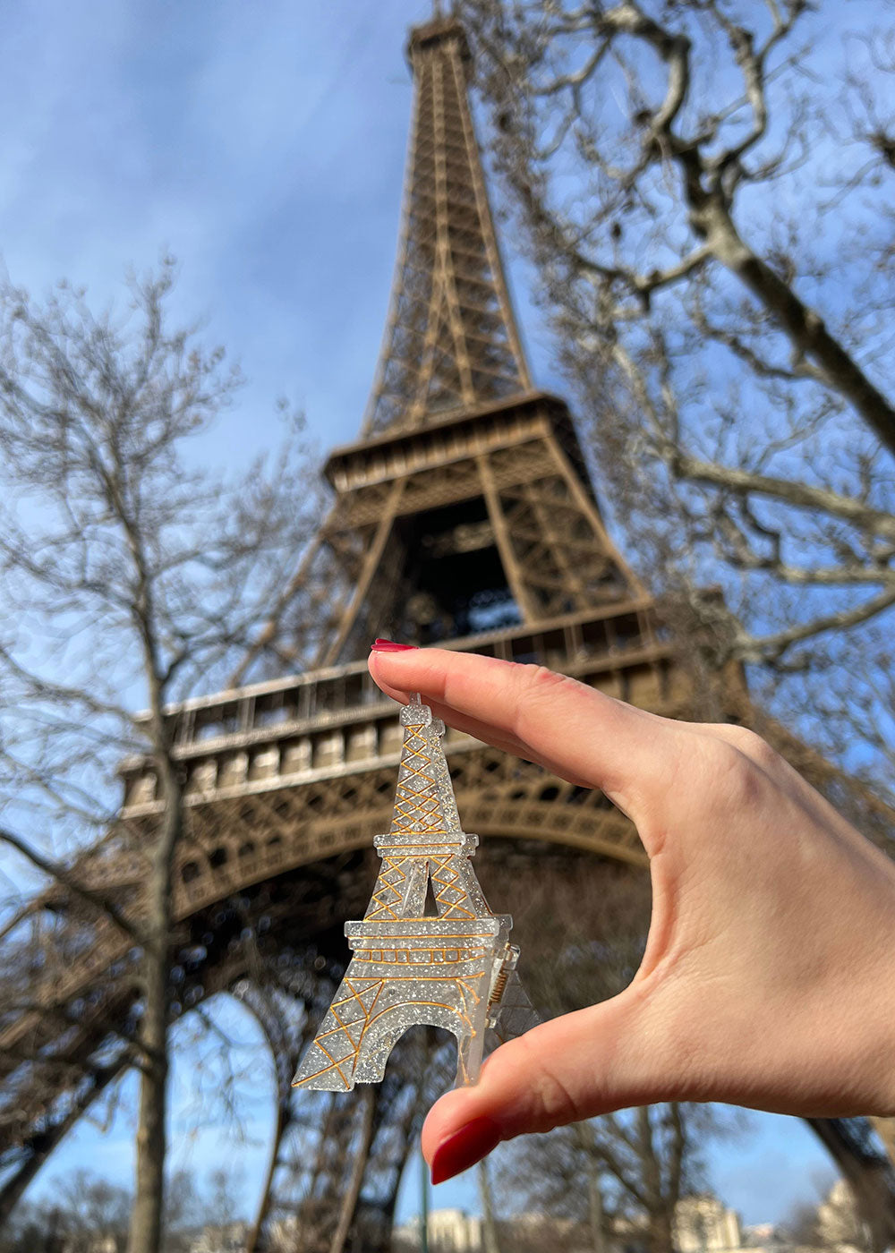SOLAR ECLIPSE Hand-Painted Eiffel Tower Paris Claw Hair Clip - Eco-Friendly